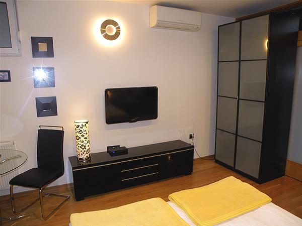 Opłata jest wliczone w cenę.Od urządzeń wyposażone są w klimatyzację, centralne ogrzewanie, w pełni wyposażoną kuchnię, Max TV (HBO, Cinemax, Plus Package, Sport Package, tylko w AP1), telewizor LCD, komputer z dostępem do Internetu (tylko w AP1), bezprzewodowy internet wszystko wliczone w cenę. Dla lepszego i bardziej komfortowy sen naszych gości wyposażyliśmy główne łożyska jakości Dormeo materac o grubości 6 cm wypełnionych wylewaną pianki, a wybór kładziemy trzy rodzaje poduszek: mocniejsze, bardziej miękkie i anatomiczną poduszkę. Dla Twojego samochodu mamy własne miejsce parkingowe.