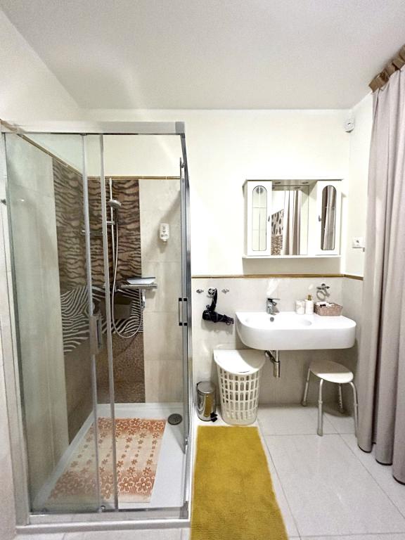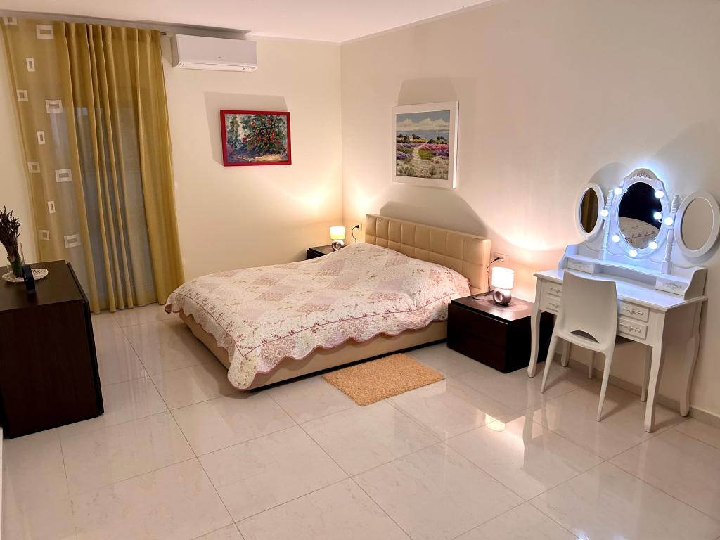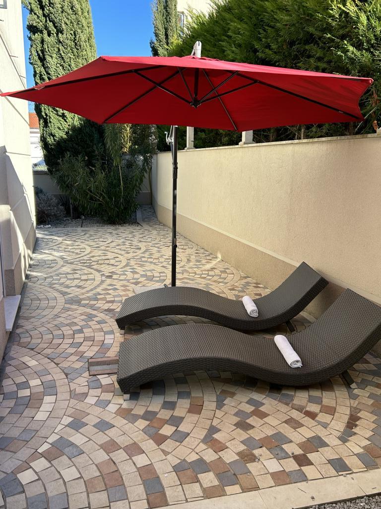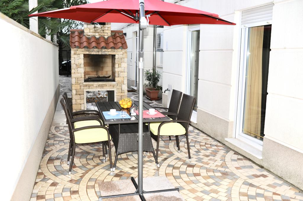Luksusowo urządzony apartament dla 4 osób, z bezpłatnym dostępem do Internetu, klimatyzacją i parkingiem. Mieszkanie jest w pełni wyposażone, a goście będą mogli opalać się lub grillować na dużym tarasie o powierzchni 120m2. Oprócz tych wszystkich korzyści, z balkonu można zobaczyć morze, a plaża znajduje się 100 m od apartamentu. Zwierzęta są akceptowane za opłatą.