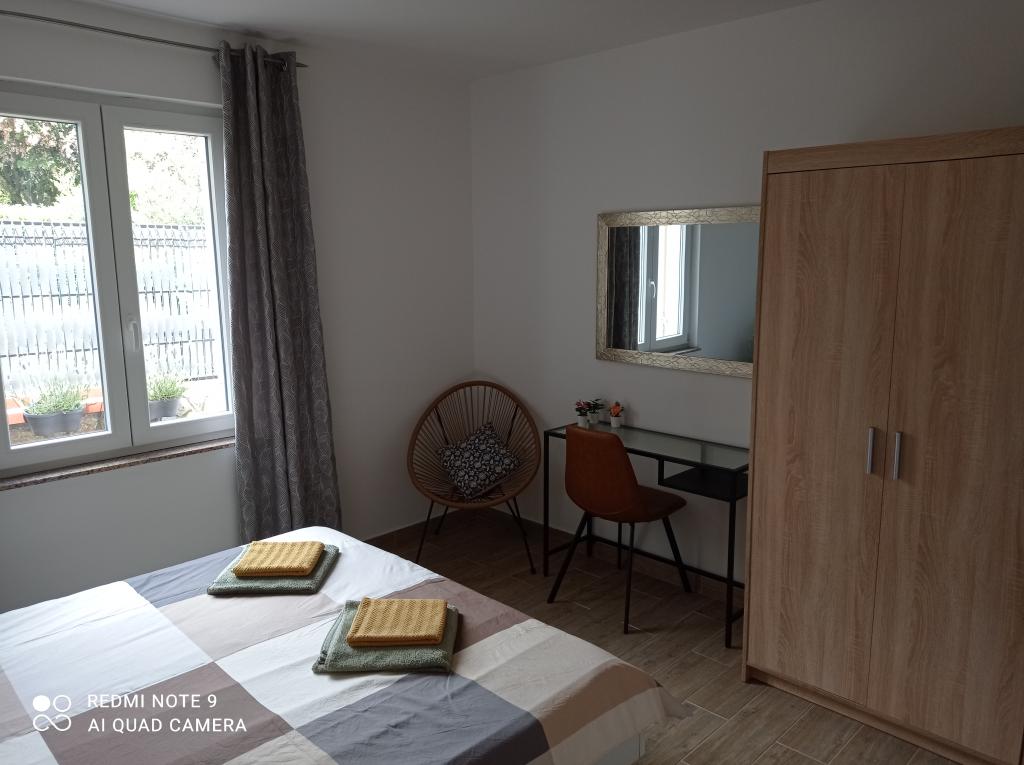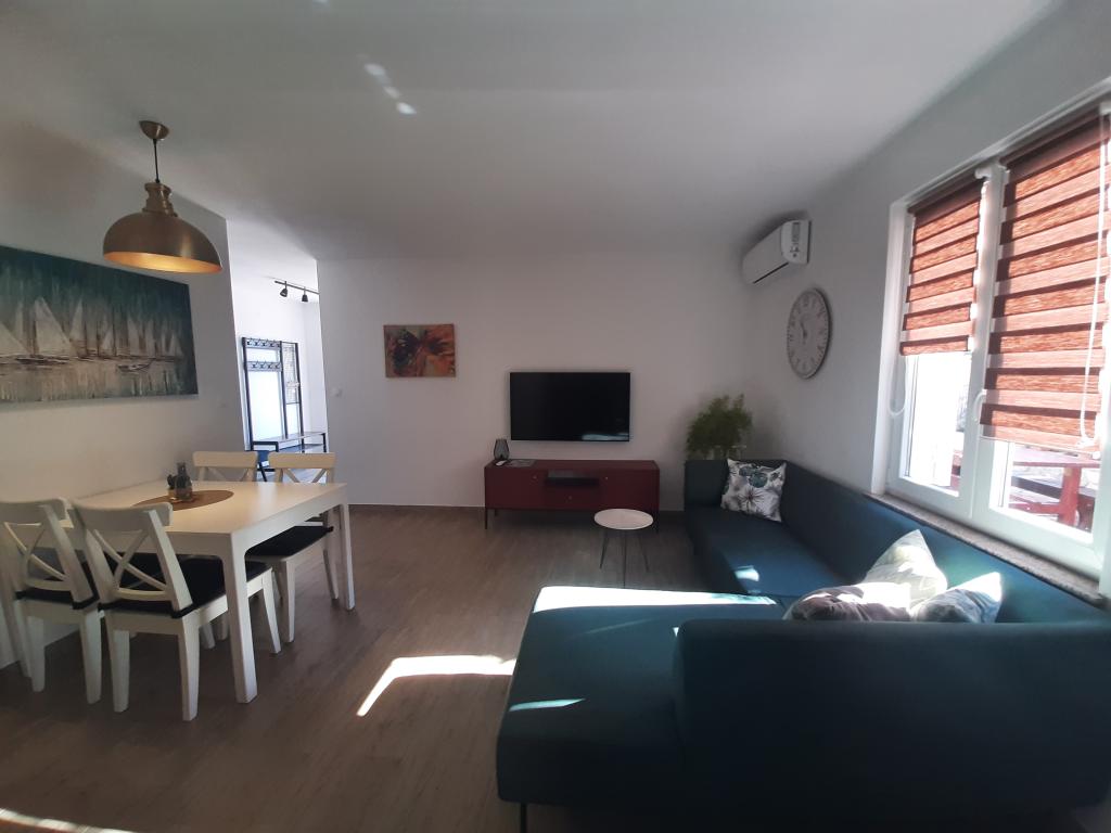 Nowo wyremontowany apartament znajduje się na parterze domu rodzinnego w samym centrum Krku. W apartamencie znajdują się dwie sypialnie, bogato wyposażona kuchnia z jadalnią, pokój dzienny, łazienka oraz taras z grillem. W cenę noclegu wliczone jest bezpłatne WiFi oraz prywatny parking obok obiektu. Lokalizacja apartamentu jest niezwykle atrakcyjna, ponieważ podczas pobytu w Krk nie potrzebujesz samochodu. Mieszkanie znajduje się blisko wszystkich niezbędnych udogodnień, które można odwiedzić na piechotę (plaża, sklep, restauracja, stare centrum miasta). Oprócz standardowych sprzętów mieszkanie wyposażone jest w zmywarkę i pralkę oraz klimatyzację. Zwierzęta nie są akceptowane.