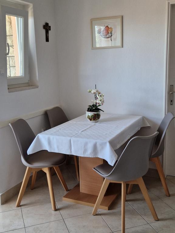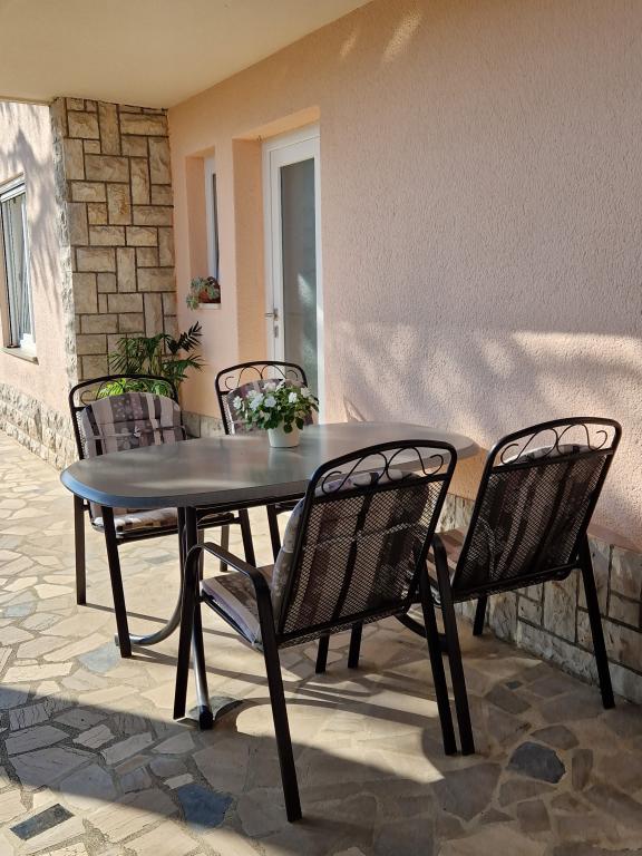 Mieszkanie w cichej i atrakcyjnej lokalizacji na Krka, w otoczeniu zieleni, z widokiem na morze i mury miejskie. Obiekt położony jest 80 m od plaży i 100 m od centrum. Obiekt posiada własny parking. Mieszkanie składa się z 2 sypialni z podwójnymi łóżkami, kuchni, jadalni i łazienki. W jednej sypialni znajduje się dodatkowe łóżko. Taras z miejscami do siedzenia oferuje relaksujące chwile w ciągu dnia lub wieczorem. Pobliskie plaże oferują różnorodne obiekty sportowe i rekreacyjne. Powitanie!