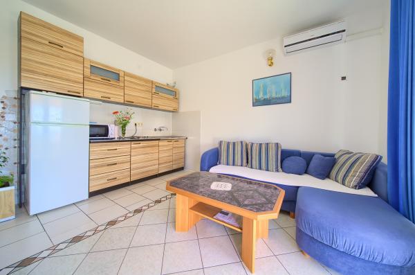 W pełni wyposażone apartamenty w cichej okolicy i Krka, siedzący w trzecim rzędzie do mora.Objekt jest max 5 min spacerem do plaży i 15 minut do centrum miasta, gdzie wszystkie niezbędne udogodnienia.