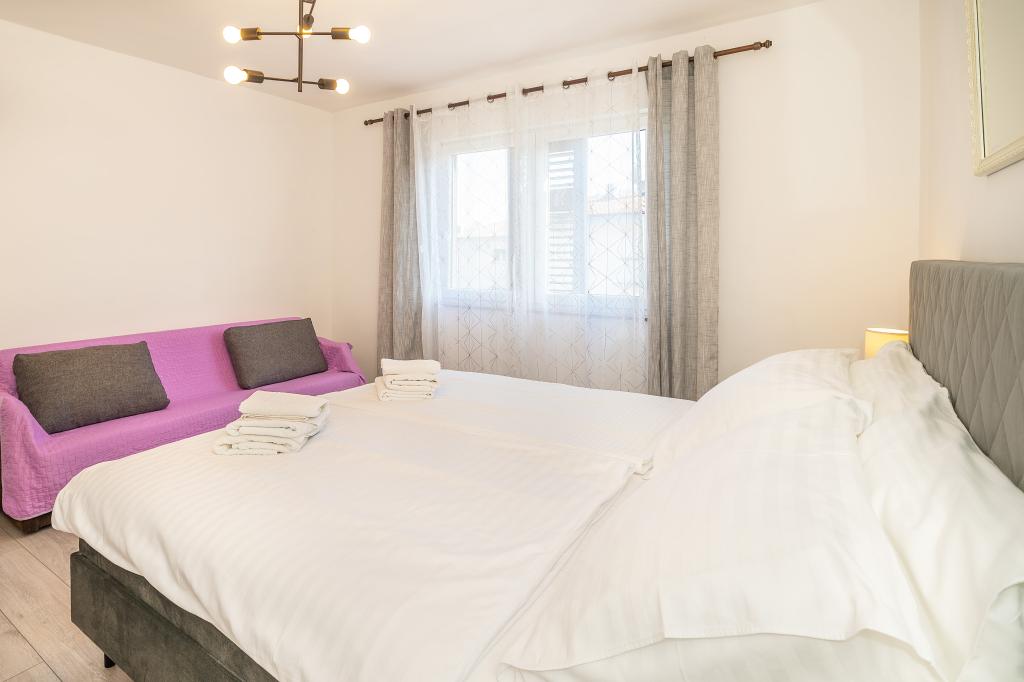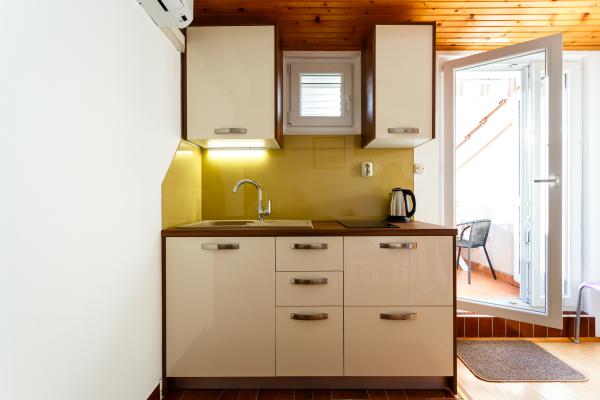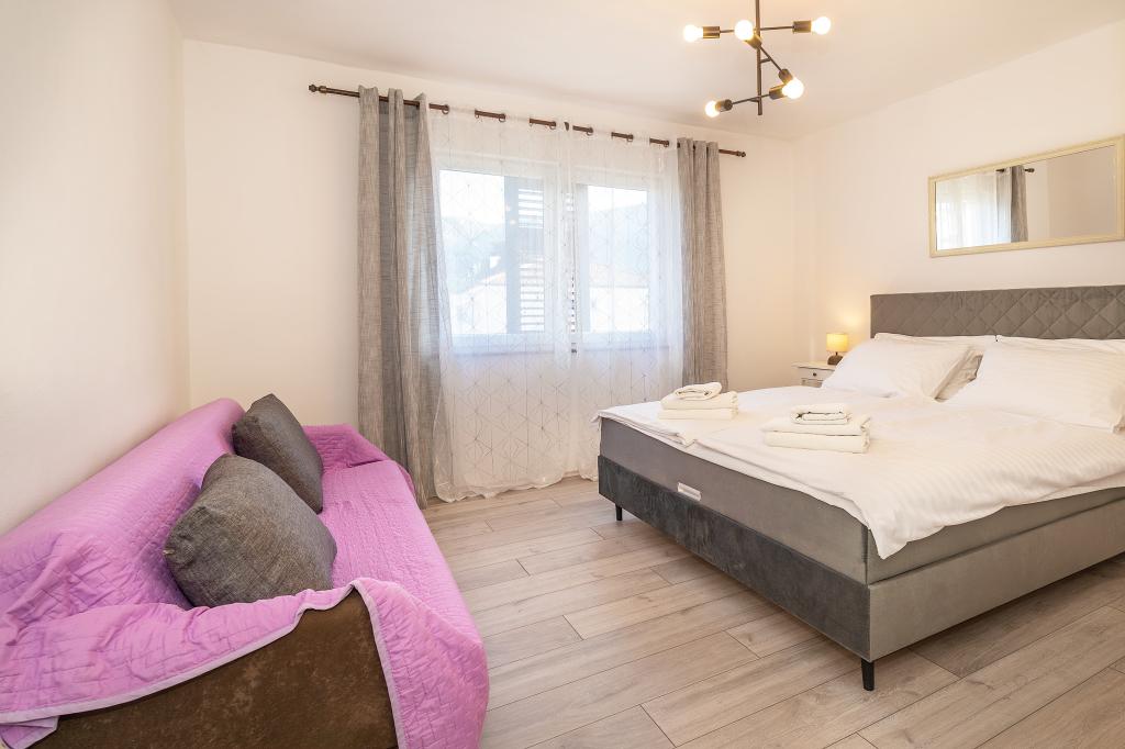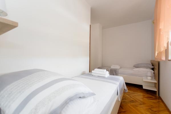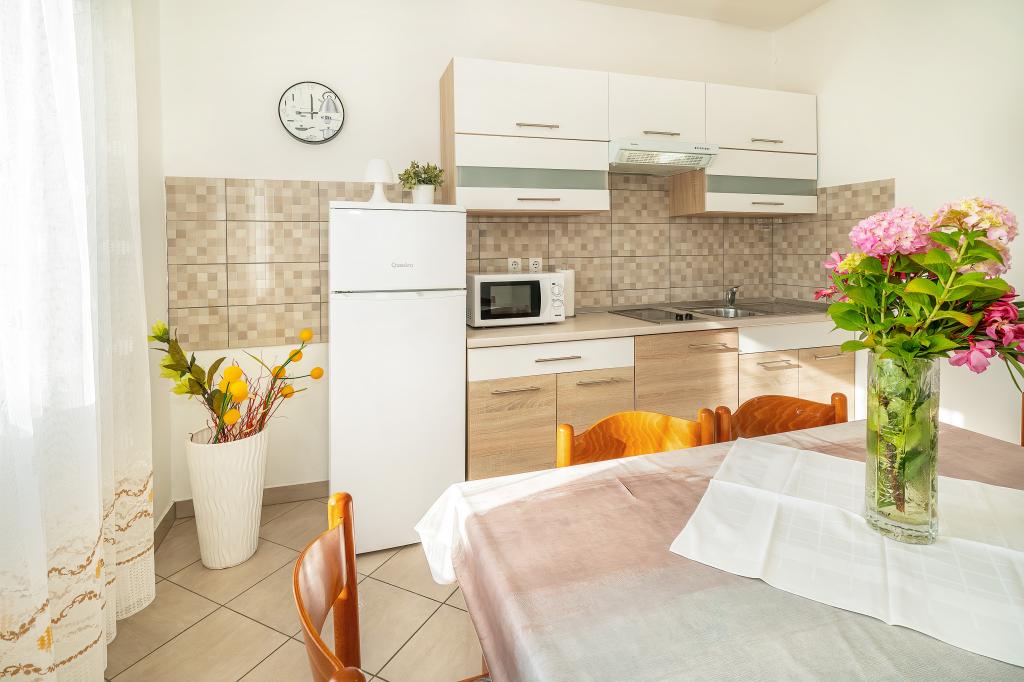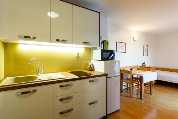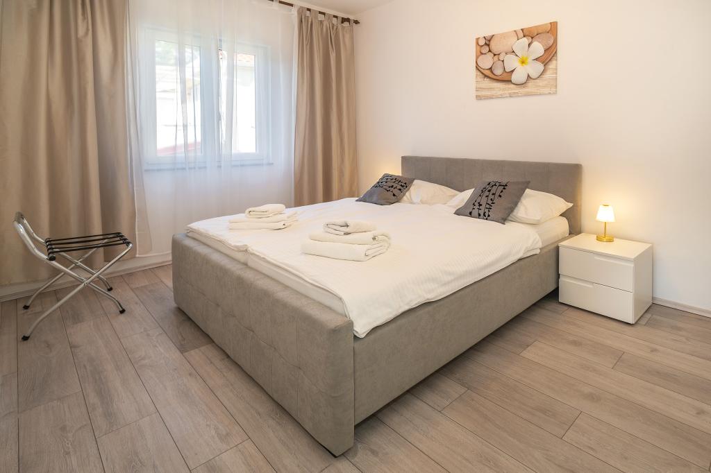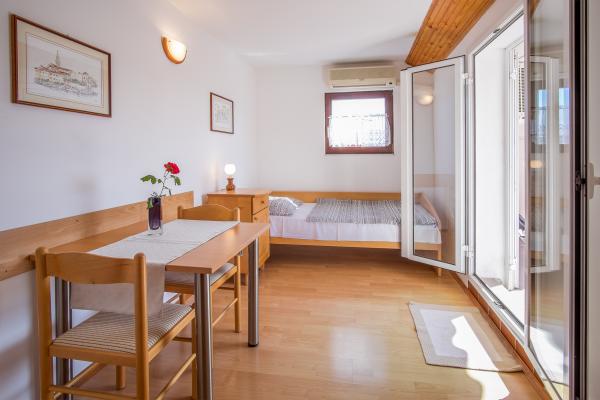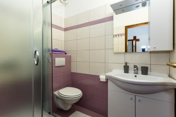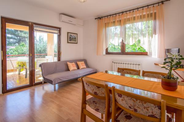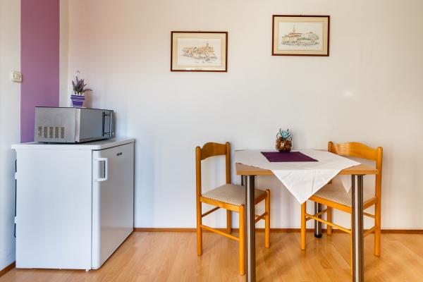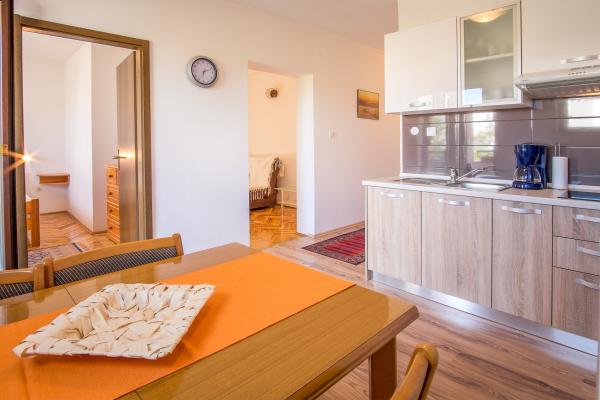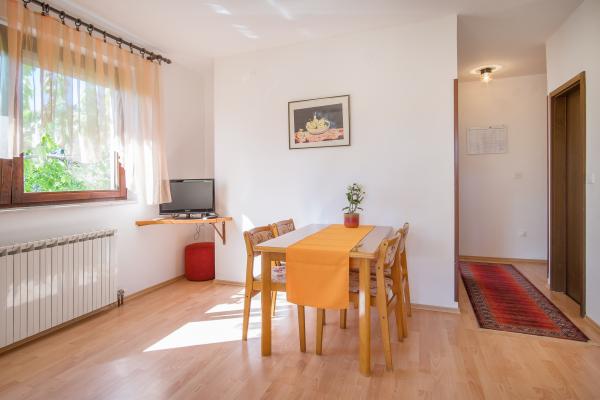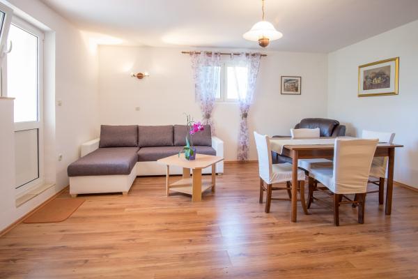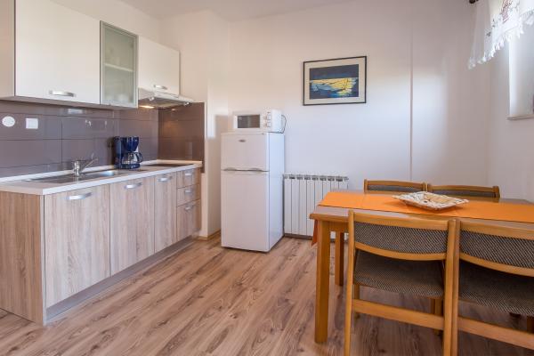 Dom z apartamentami znajduje się w samym centrum miasta Krk, w pobliżu wszystkich niezbędnych udogodnień. Właściciel mieszka w domu i jest zawsze dostępny, mówi i pisze płynnie po włosku, niemiecku i angielsku. Kuchnie we wszystkich apartamentach są nowo urządzone iw pełni wyposażone (zmywarka, mikrofalówka, toster, ekspres do kawy i czajnik). Do mieszkania przynależy również miejsce parkingowe. Przed domem znajduje się wspólny grill oraz stół jako miejsce do spotkań towarzyskich. Zwierzęta nie są akceptowane!