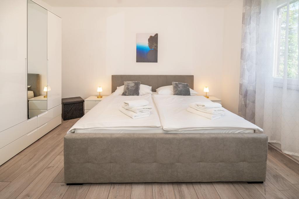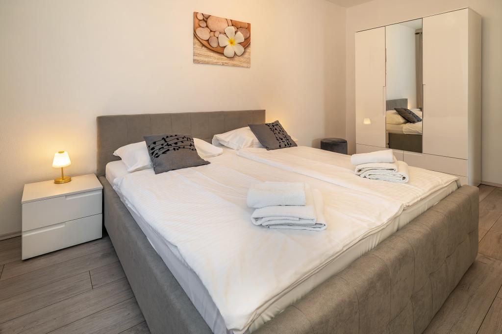 Czytaj więcej KwaterW cenie: wynajem mieszkania i korzystanie ze wszystkich urządzeń, zużycie energii elektrycznej, zużycie wody, klimatyzacja, telewizja, internet bezprzewodowy, sprzątanie końcowe, cotygodniowa zmiana całej pościeli (prześcieradła, obrusy, ręczniki, ściereczki), opłata klimatyczna, podatek ekologiczny. Dodatkowe łóżko jest dostępne w każdym apartamencie za dodatkową opłatą w wysokości 9,00 euro/dzień. Pobyt krótszy niż 4 noce jest płatny o 30% więcej. W szczycie sezonu apartament można wynająć na 7 lub więcej dni. Po potwierdzeniu rezerwacji konieczne jest wpłacenie zaliczki w wysokości 20% ceny całkowitej. Czas wejścia do apartamentu to 13:00, a czas wyjazdu to 10:00.