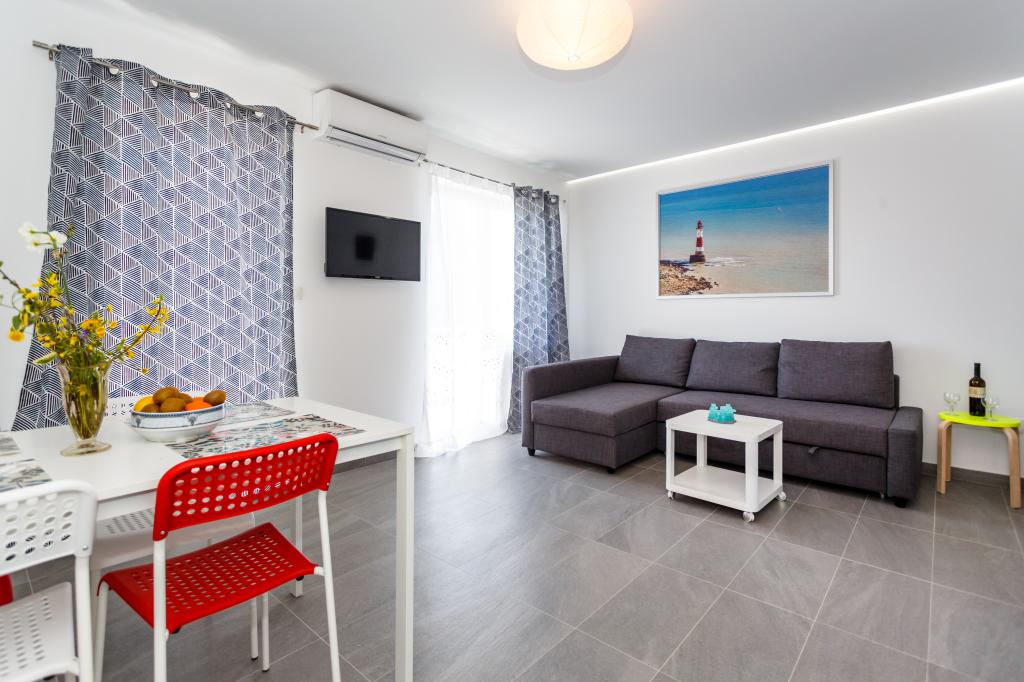 Powitanie! :) To nasz nowy apartament położony blisko centrum Krk (około 5 minut spacerem). Mieszkanie składa się z jednej sypialni z łóżkiem małżeńskim, salonu z sofą, którą można rozłożyć na łóżko małżeńskie, kuchni oraz łazienki z niezbędnymi akcesoriami. Posiada również balkon, na którym o każdej porze dnia można cieszyć się słońcem. Oferujemy bezpłatne miejsce parkingowe w cieniu, bezpłatną klimatyzację, smart TV z Netflix, grill w ogrodzie obok apartamentu oraz bezpłatne WiFi.