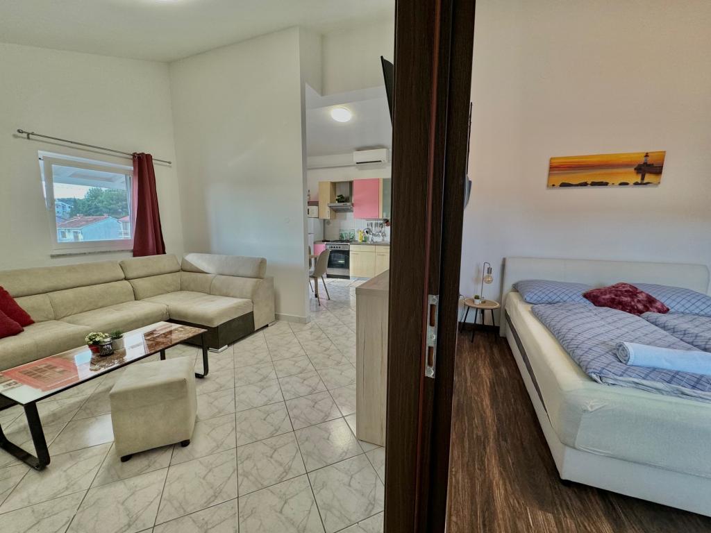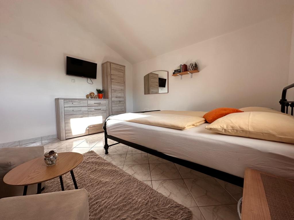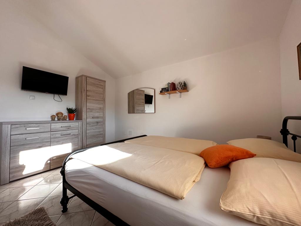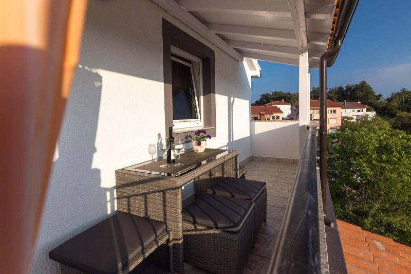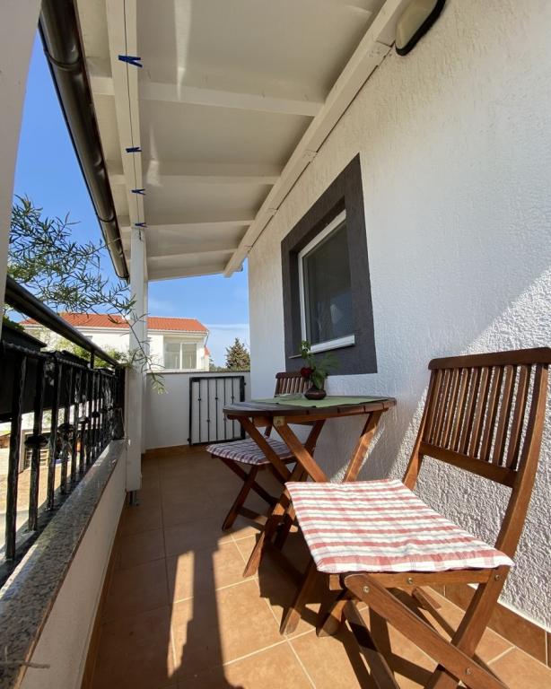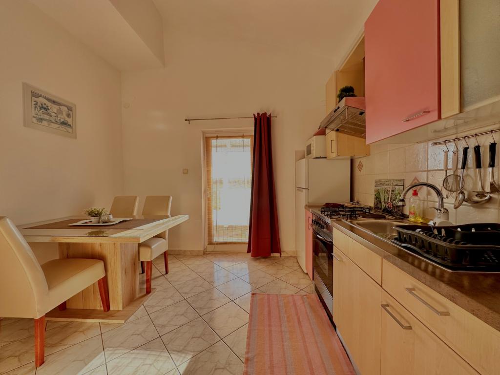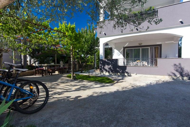 Dom położony jest w bardzo dogodnej lokalizacji, w spokojnej okolicy, kilka minut pieszo od plaży i dziesięć minut spacerem do centrum miasta. Obiekt składa się z 5 apartamentów. Trzy z nich to studia dla maksymalnie 2 osób, jeden apartament dla maksymalnie 3 osób i apartament o powierzchni 75 metrów kwadratowych dla maksymalnie 5 osób. Każdy apartament posiada w pełni wyposażoną kuchnię, piękny balkon lub taras, oddzielne wejście i strzeżone miejsce parkingowe. Do dyspozycji gości wspólny ogród ze sprzętem do grillowania. *** Zwierzęta mile widziane po wcześniejszym zgłoszeniu i za dodatkową opłatą 12 eur za dzień (płatne na miejscu).