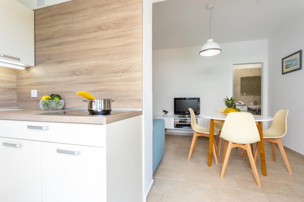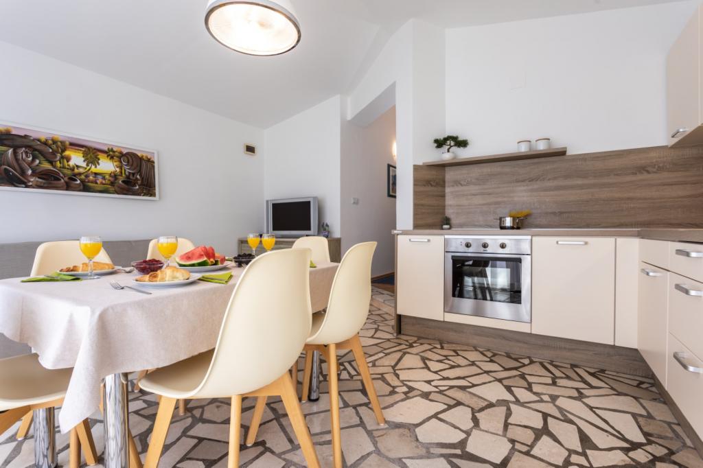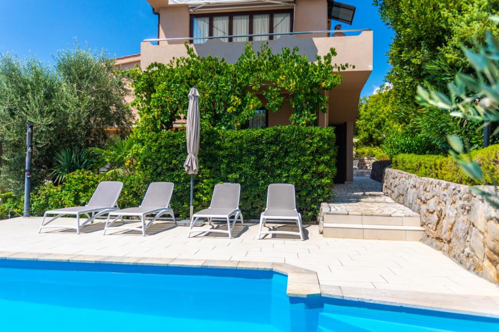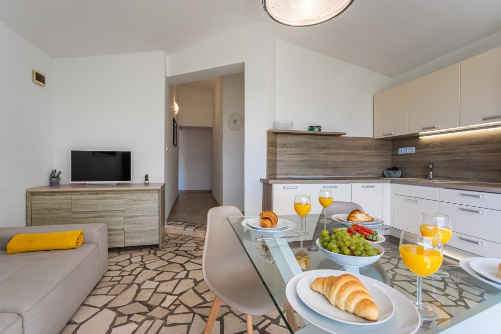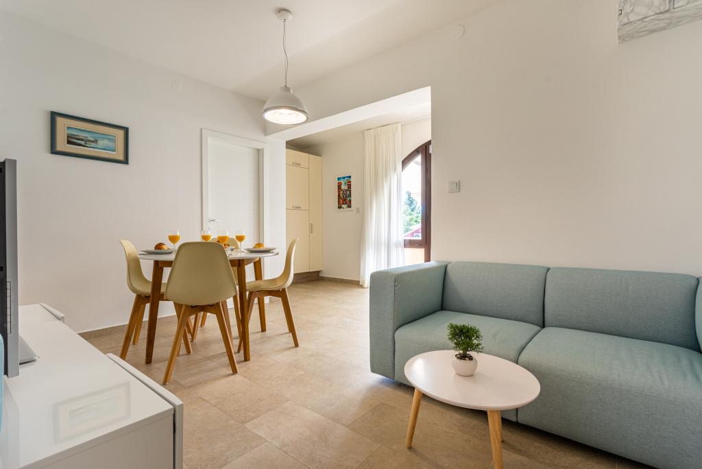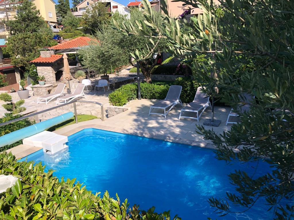 Apartamenty Haus Barbara – oaza spokoju z basenem na wyspie Krk. Witamy w Haus Barbara, rodzinnym obiekcie położonym w urokliwym miasteczku Kornić. Nasze apartamenty położone są w idealnej lokalizacji, zaledwie 3 km od miejscowości Punat i 5 km od miasta Krk. Oferują one idealne połączenie komfortu, nowoczesnego designu i relaksującej atmosfery. Co Cię czeka? 4 nowocześnie urządzone apartamenty, idealne na rodzinne wakacje lub wypad we dwoje. W każdym apartamencie dla Państwa wygody oferujemy WiFi, klimatyzację i telewizję satelitarną. Piękny ogród - idealne miejsce na relaks i obcowanie z naturą. Basen dostępny dla wszystkich gości - można tu ochłodzić się w ciepłe letnie dni. Bezpieczny parking - nie musisz się martwić o swój pojazd. Doskonała lokalizacja: Blisko pięknych plaż, restauracji i atrakcji. Spokojne otoczenie, z dala od tłumów, ale wystarczająco blisko, aby zwiedzić wyspę. Idealne miejsce dla miłośników natury, aktywności sportowych i autentycznych wrażeń na wyspie.