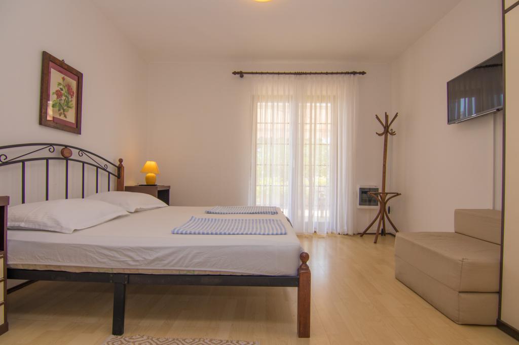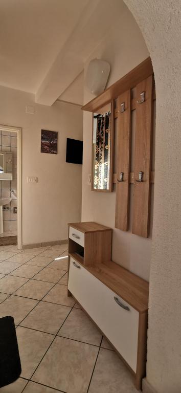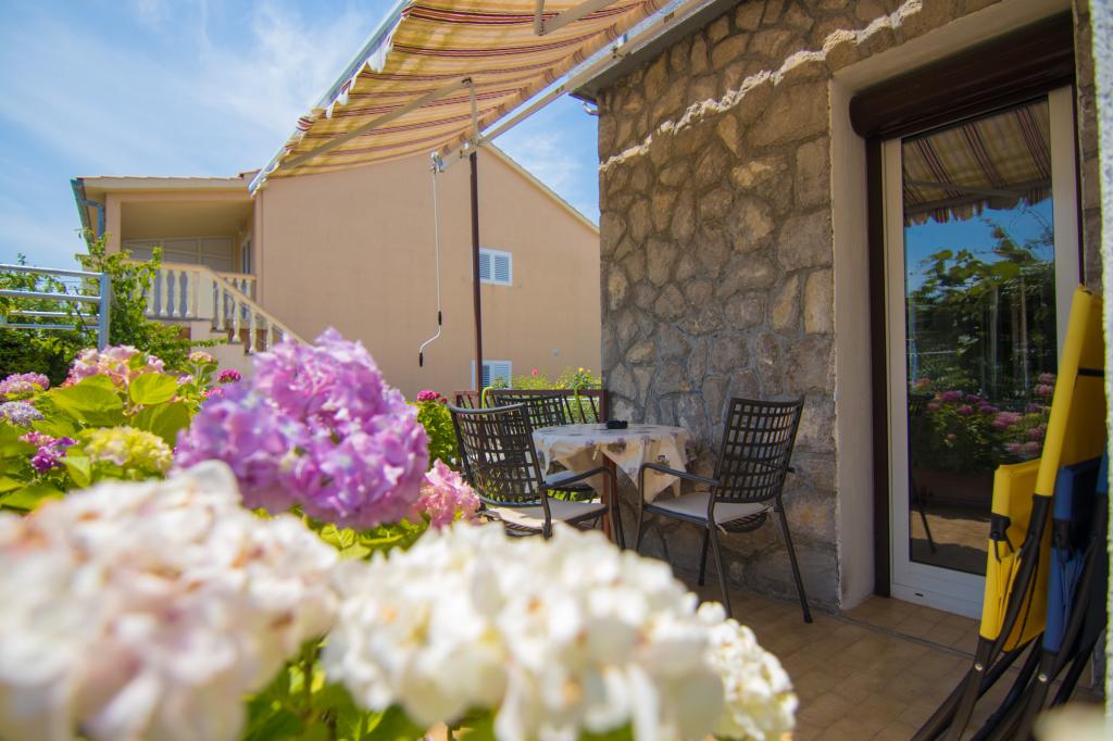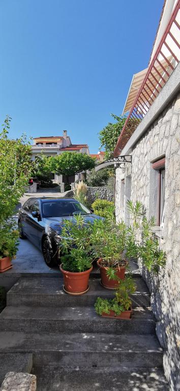 Nasz dom z apartamentami położony jest w spokojnej części Krk. Apartamenty znajdują się na parterze, obok siebie. Są nowocześnie wyposażone. Każdy ma własny taras otoczony kwiatami hortensji. z widokiem na ogród. Parking znajduje się na podwórku, przykryty markizą. Plaża PLAV znajduje się 2-3 minuty spacerem od naszego domu. Właściciele mieszkają na pierwszym piętrze domu.