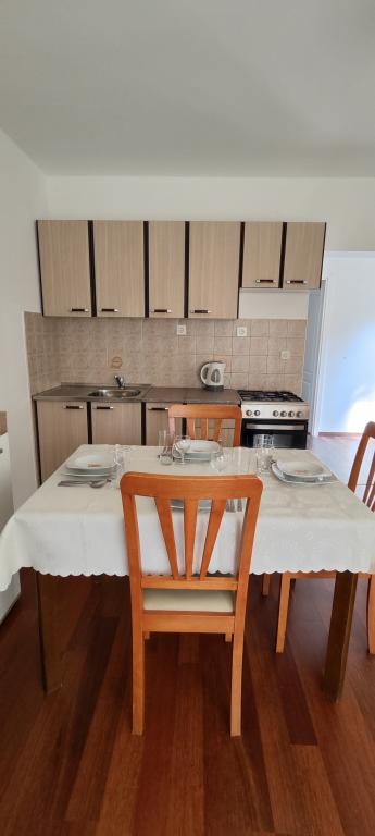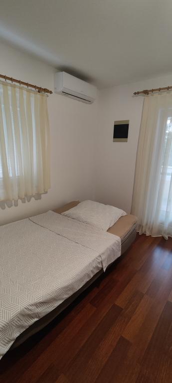 W małej nadmorskiej miejscowości Kornić znajduje się dom rodzinny z trzema nowocześnie urządzonymi apartamentami o powierzchni 43 m². Każdy apartament może pomieścić 2 osoby dorosłe i 2 dzieci. Składa się z sypialni, toalety/łazienki z prysznicem oraz kuchni z salonem, w którym znajduje się dostawka. Z salonu wychodzi się na zadaszony taras. Apartamenty wyposażone są w: klimatyzację, telewizor, internet, piekarnik, lodówkę (bez zamrażarki), czajnik i suszarkę do włosów. Każdy apartament ma własne miejsce parkingowe. Plaża oddalona jest o 10 minut spacerem, a w pobliżu znajduje się również piekarnia, poczta, sklep i restauracja... Serdecznie witamy. Kontakt bezpośredni za pośrednictwem apartmanija.hr.