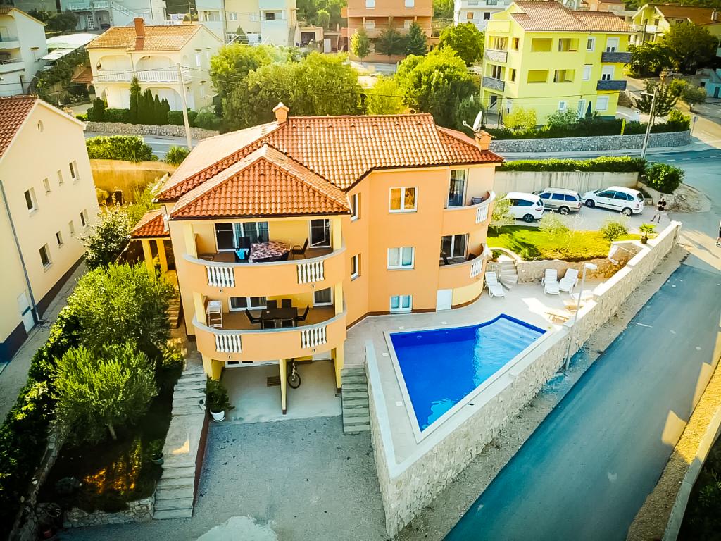 Wieś Salatić znajduje się około 3 km od miasta Krk, na wysokości około 140 m, z przyjemnym, łagodnym klimatem i świeżym powietrzem. Rozpościera się z niego wspaniały widok z Učki na Velebit aż do cudownego błękitnego morza i archipelagu Kvarner (Golog otok, Grgura, Cres...) Apartamenty składają się z jednego (A2 2) lub dwóch (A4 2) pokoi dwuosobowych , kuchnia, jadalnia, pokój dzienny, łazienka i balkon. ) Balkony ze wspomnianym już cudownym widokiem to idealne miejsce na spotkania towarzyskie przy obiedzie lub na spokojny popołudniowy odpoczynek. Wyposażony jest we wszystkie niezbędne urządzenia, które uczynią Państwa pobyt jeszcze przyjemniejszym i piękniejszym. Oferujemy również duży basen ze słoną wodą, doskonałe miejsce do wypoczynku, zabawy i uniknięcia tłumów na plażach. Apartamenty znajdują się zaledwie 5 minut jazdy samochodem od centrum Krk (3,5 km) i wielu miejskich plaż. Osada jest bardzo dobrze skomunikowana, co znacznie ułatwi ci zwiedzanie wiejskich części wyspy