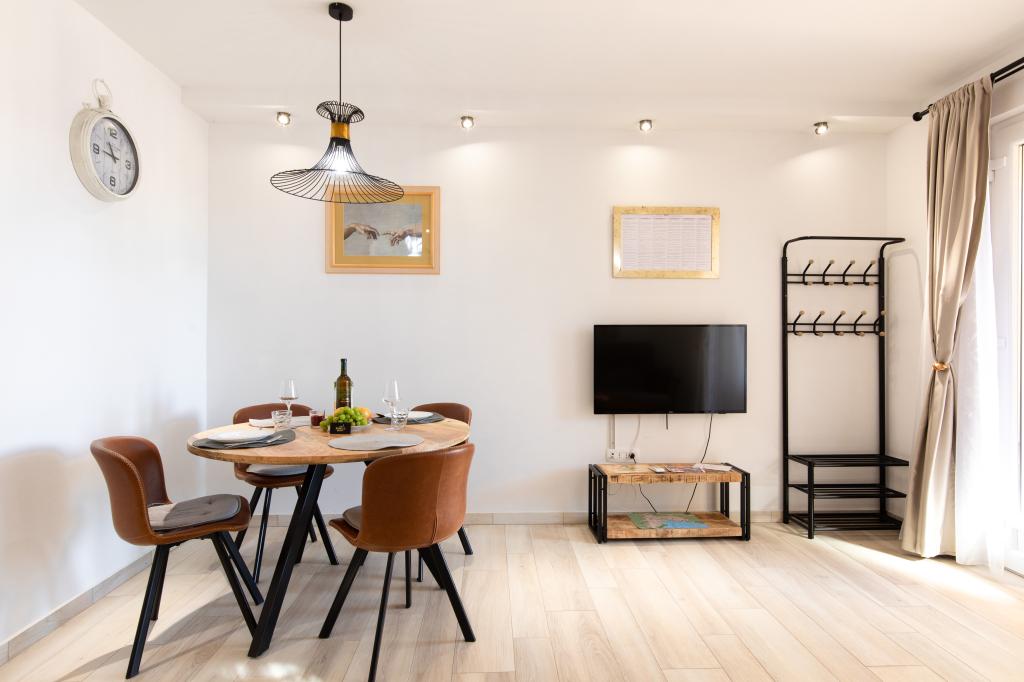 Bardzo przyjazna atmosfera, właściciel mieszka w tym samym domu i zawsze tam dla nas. Mieszkanie jest całkowicie nowe, świetne wyposażone, klimatyzacja, TV, bezpłatny internet, piękny balkon z widokiem na miasto Krk i morze, sypialnia duża i kuchnią bardzo przestronny, parking dla gości. Do morza jest około 3 km od hotelu, więc to mieszkanie jest idealne dla samochodów i motocykli turystów. Gorąco polecam!