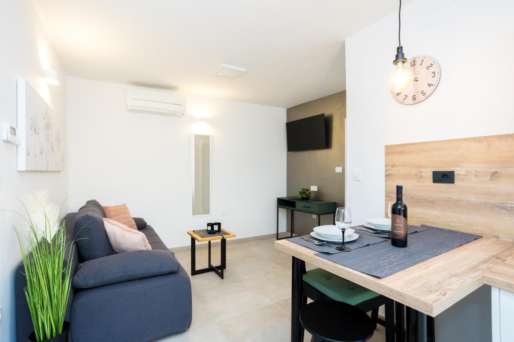 Mieszkanie jest bardzo ładne, nowocześnie urządzone i czyste. Zakwaterowano nas w apartamencie A2+2. Obydwa pokoje są bardzo przestronne i wyposażone w klimatyzację. Pobyt był bardzo przyjemny. Pan Rajko jest bardzo sympatycznym i prawdziwym miejscowym. Jest też pralka, która jest bardzo przydatna. Plaża jest bardzo blisko. Do miasta można dojść w 10 minut. Droga do miasta jest bardzo piękna, a spacer jest dość relaksujący. Chętnie wrócimy do apartamentów.