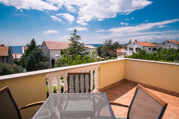 Wynajmujemy 6 apartamentów dla 2 - 6 osób w spokojnej części miasta Krk, powyżej hotelu Koralj i zaledwie 200 metrów od plaży sosnowej. Trzy apartamenty znajdują się na parterze i mają widok na morze, podczas gdy dwa apartamenty znajdują się na parterze. Wszystkie apartamenty mają chłodzenie i ogrzewanie i mają własne miejsce parkingowe na podwórku. Możliwość korzystania z grilla na węglu drzewnym na podwórku. Apartament znajduje się 15 minut od morza od centrum, w odległości 400 metrów znajdują się sklepy, boiska sportowe i restauracje. W pobliżu szlaków rowerowych Krk - Malinska i Krk - Punat 20 km.