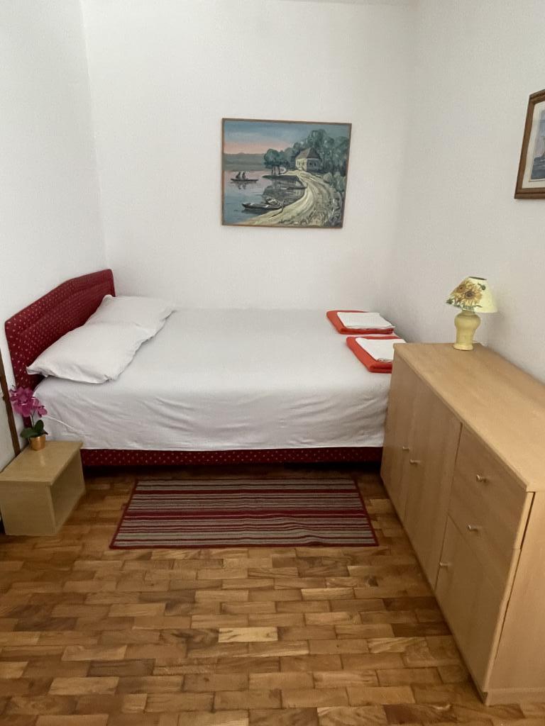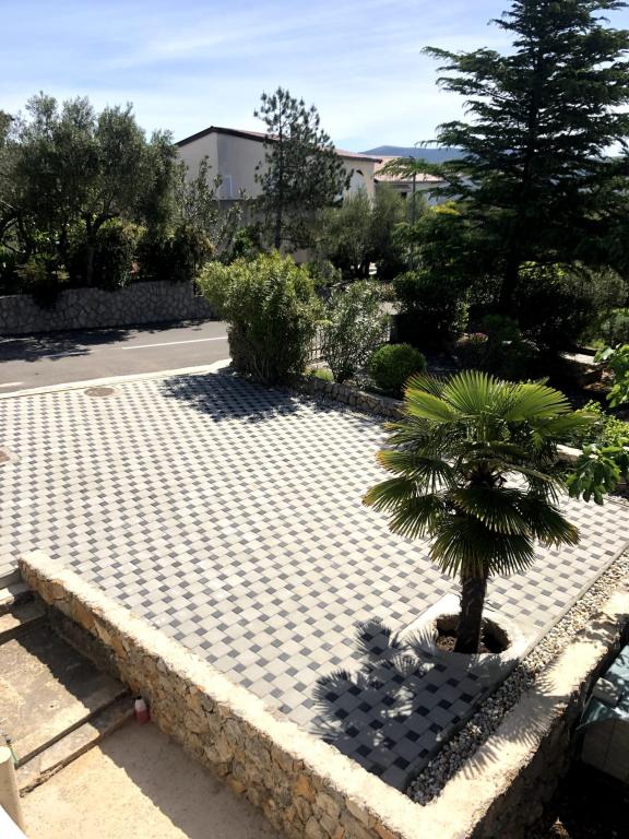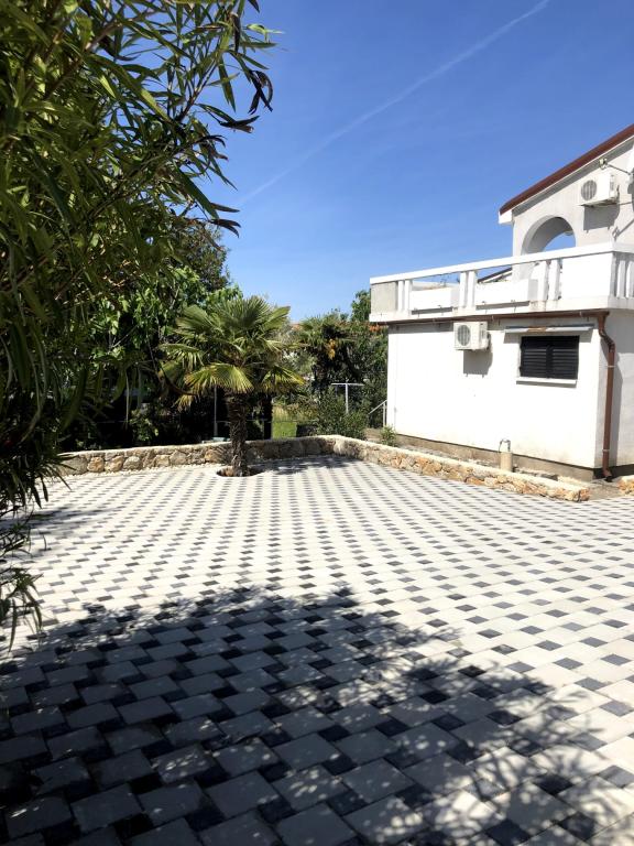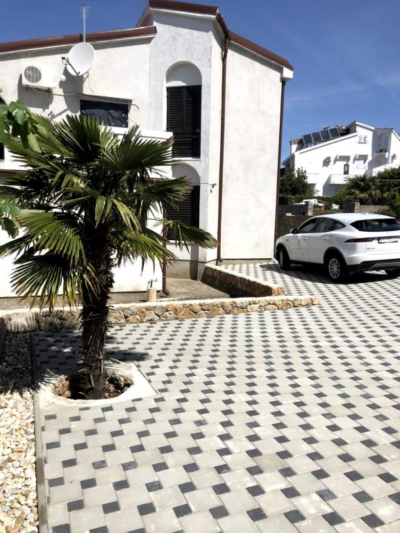Dom rodzinny z 2 dużymi apartamentami 80m2 otoczony zielenią z przyjaznymi gospodarzami. Spokojna część Krk z domami rodzinnymi. Rodzina wynajmuje od ponad 30 lat. Górne mieszkanie zawiera duży taras z pięknym widokiem, kuchnię i jadalnię, salon, 2 sypialnie i łazienkę. Niższe mieszkanie zawiera taras w cieniu, kuchnię z jadalnią, salon, 2 sypialnie i łazienkę. Obiekt położony 10min spacerkiem do morza. W pobliżu sklepy, restauracje i benzyna to 3min spacerkiem. Parking prywatny. .
