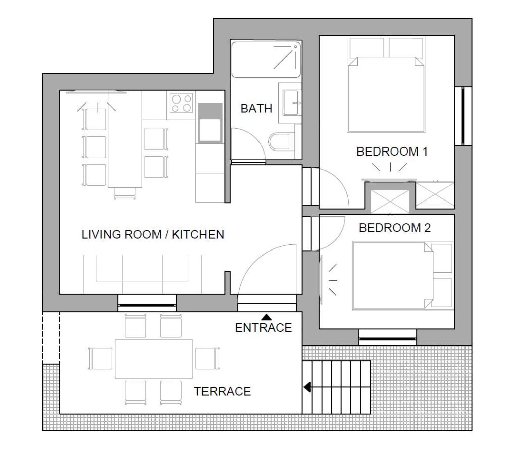 Apartament dla czterech osób z dwoma dostawkami (42 m2)