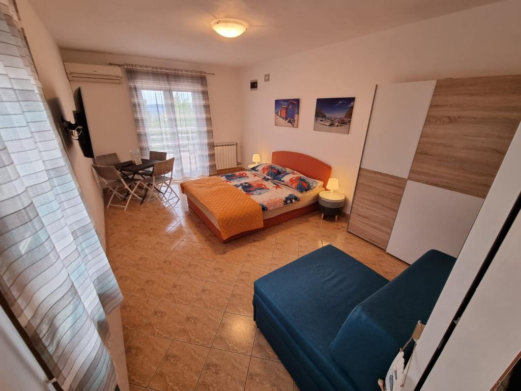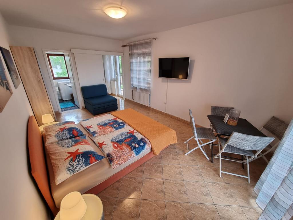 Piękne apartamenty w pobliżu morza i plaży w atrakcyjnej części miasta Krk, z dużymi tarasami, które oferują wyjątkowy widok na morze i panoramę na wyspy Plavnik, Cres, Rab i Lošinj. Apartament Ida (2 2 osób) i apartament Miha (2 1persone) posiada wszelkie udogodnienia, klimatyzatory, pralki, kuchenki mikrofalowe, ogrzewanie centralne, internet, TV satelitarną. Apartamenty położone są obok siebie i otwarcie przejścia na tarasie może być używany przez społeczność dla rodzin z większą liczbą dzieci lub przyjaciół. Goście mogą również korzystać z ogrodu śródziemnomorskiego z grillem.