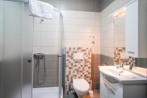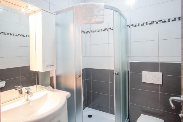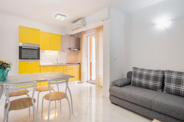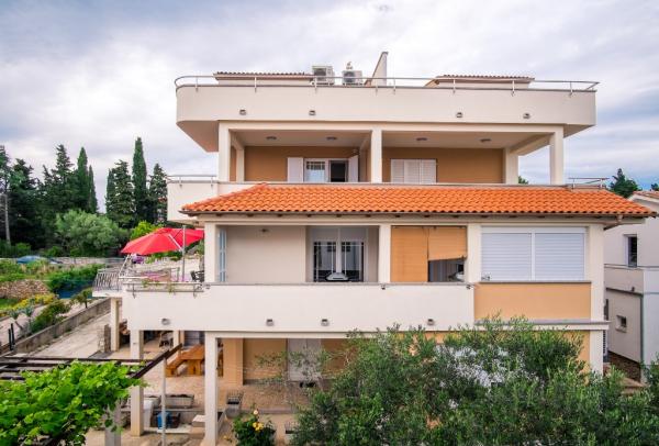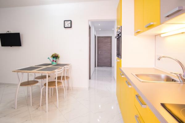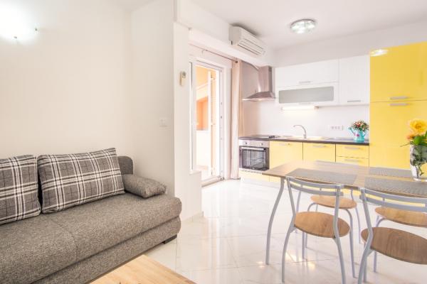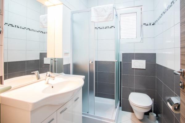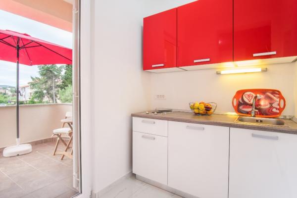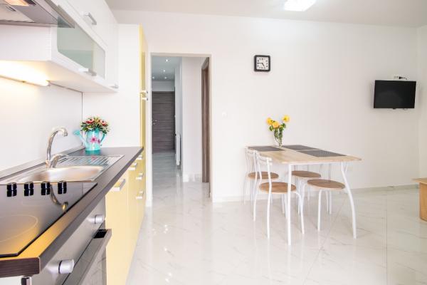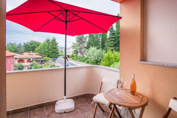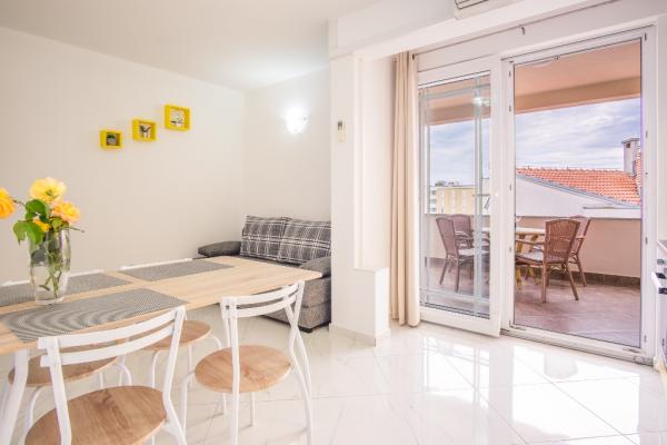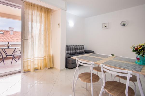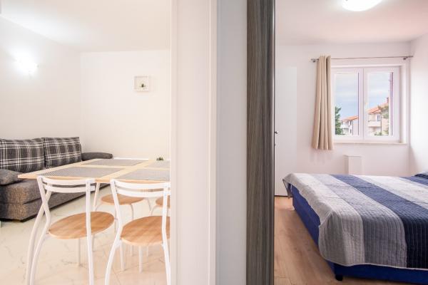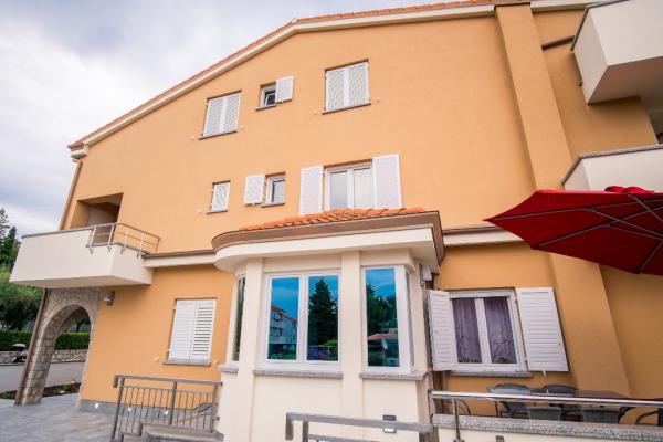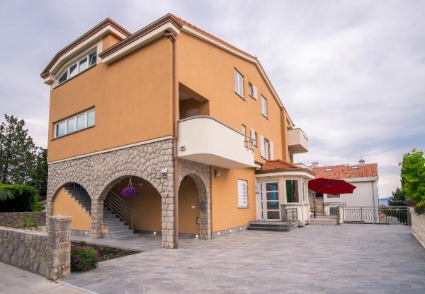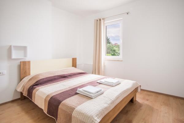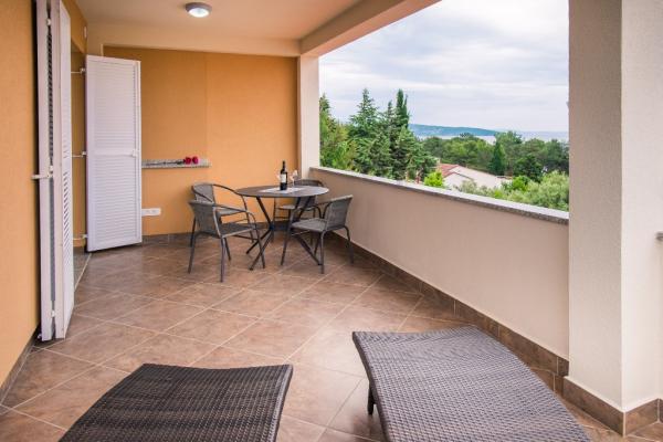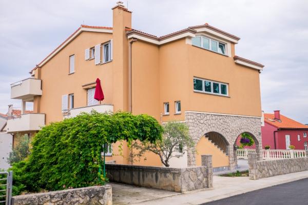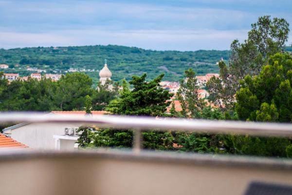 Nowe nowocześnie urządzone apartamenty na pierwszym piętrze budynku, położony 200 m od morza, w cichej i przyjemnej części Krk. Apatmani posiadają przestronne tarasy z pięknym widokiem na morze i pobliskie wyspy Kvarneru.
