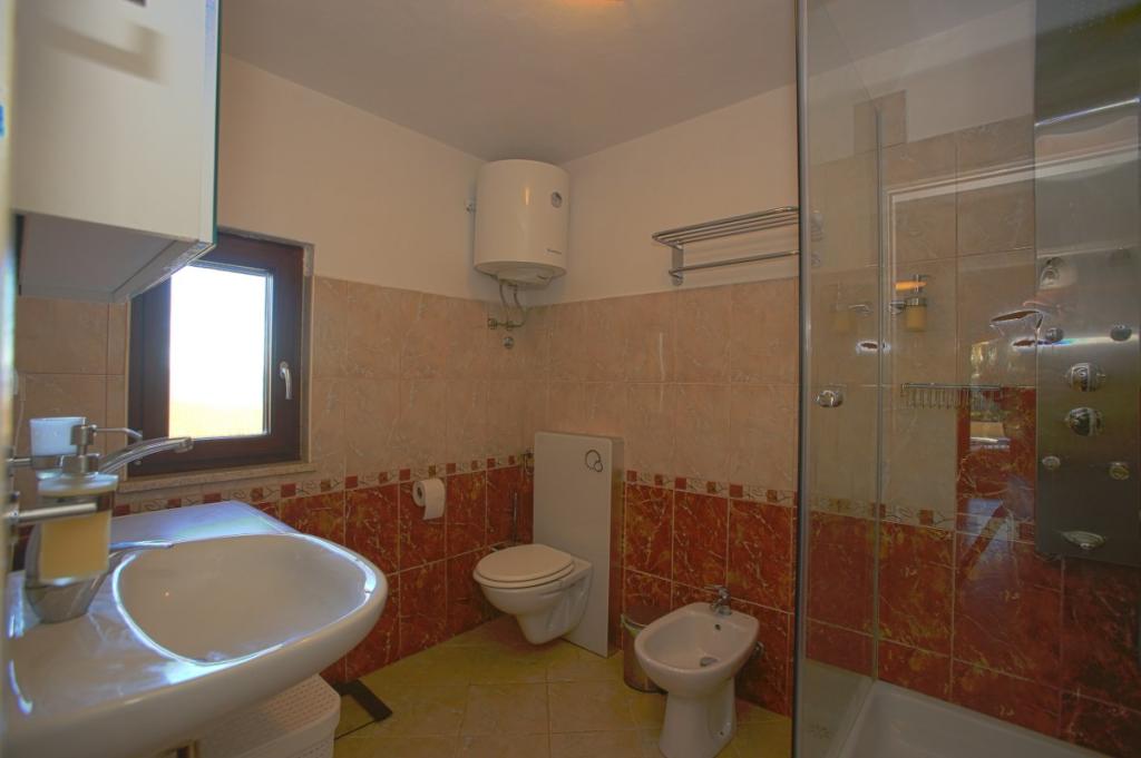 Zapraszamy do naszego domu wakacyjnego położonego w małej, spokojnej miejscowości Vlašići, niedaleko Kršan, z widokiem na przyrodę i górę Učka. To idealna oaza spokoju na rodzinne wakacje lub wakacje z przyjaciółmi. Mamy nadzieję, że będą Państwo cieszyć się ciszą i spokojem, podczas gdy Państwa dzieci będą się bawić w domku na drzewie, na zjeżdżalniach i huśtawkach. Dom o powierzchni 98 m² (korytarz, salon, kuchnia, łazienka, sypialnia z łóżkiem małżeńskim o wymiarach 160 x 200 oraz sypialnia z łóżkiem małżeńskim o wymiarach 160 x 200 i sofą 160 x 200) znajduje się na dużym, ogrodzonym ogrodzie o powierzchni 870 m² z miejscem parkingowym na działce. Dom wyposażony jest w zewnętrzny, podgrzewany basen o wymiarach 7 x 4 i głębokości 140 cm. Woda w basenie jest podgrzewana do maksymalnej temperatury 25 stopni Celsjusza w okresie, gdy jest to konieczne. Największa miejscowość w pobliżu to Kršan, która szczyci się bogatym dziedzictwem kulturowym i historycznym. Również w pobliżu wioski (15 minut drogi) znajduje się miasto Labin, położone na wzgórzu nad Rabac. Labin to cel podróży dla gości poszukujących turystyki kulturalnej i miłośników antyków, znany z licznych galerii, wystaw i imprez plenerowych. Rabac (25 minut drogi) z pięknymi plażami, uważanymi za jedyne z najpiękniejszych na Istrii, z krystalicznie czystym morzem, oraz miastami na półwyspie Istria, które również warto odwiedzić: Pulą, Rovinjem, Umagiem i Porečem, są oddalone o około 1-1,30 minuty. Wyspy Cres i Lošinj, Park Narodowy Brioni w pobliżu Puli oraz miasto Rijeka, trzecie co do wielkości miasto w Republice Chorwacji, oddalone jest o godzinę drogi od wioski. W drodze do nadmorskiej Rijeki, skąd roztacza się piękny widok na zatokę Kvarner i wyspy, warto również odwiedzić Opatiję – miejscowość turystyczną o najdłuższej tradycji w chorwackiej turystyce. Obserwatorium Višnjan położone jest w centr