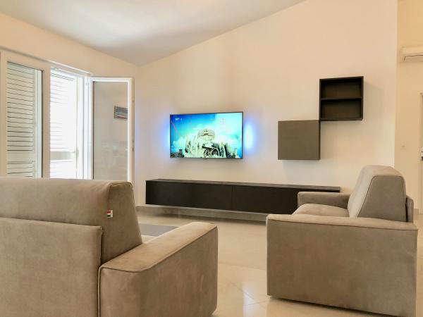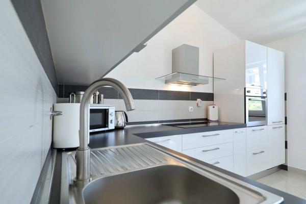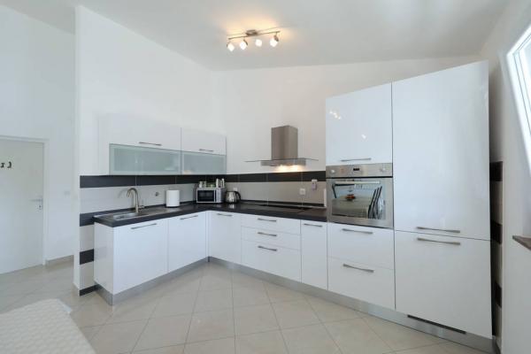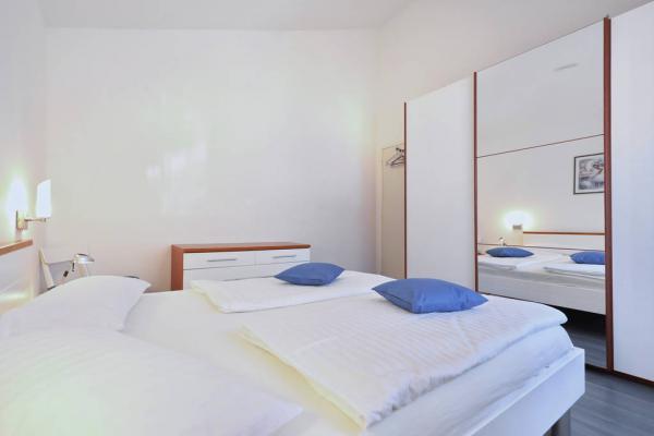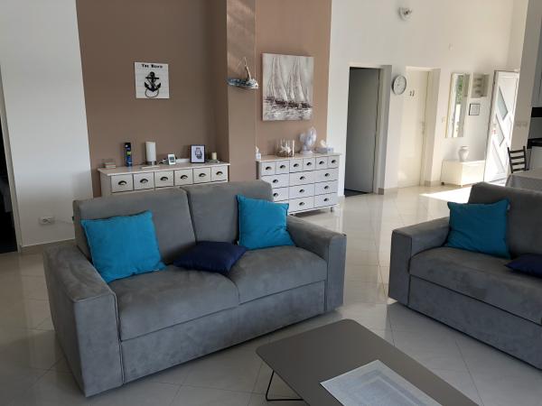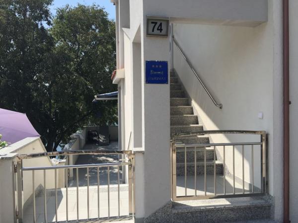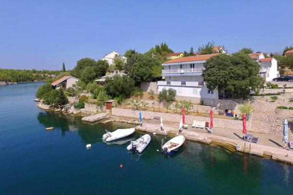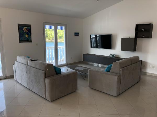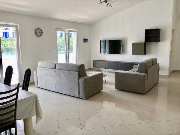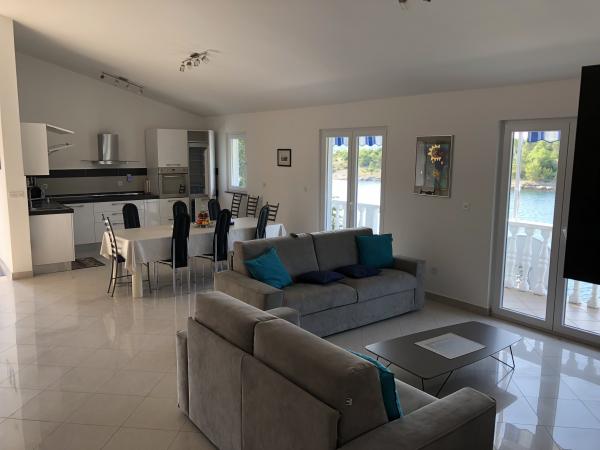 W pełni wyposażone mieszkanie z 120m2 z widokiem na morze na 1 piętrze, ładne i przytulne umeblowanie: salon / jadalnia 50m2, telewizję satelitarną, internet, klimatyzacja, 4 pokoje, kuchnia (4 palniki, piekarnik, lodówka), łazienka z prysznicem i WC, WC, balkon, grill z tarasem ... Apartament znajduje się w pierwszym rzędzie, tj. Na morzu powyżej plaży i posiada własny możliwość cumowania łodzi ... Prysznic na zewnątrz. Parking. Sklep 400 m, plaża piaszczysta 200 m, plaża skalista 20 m. Liczne wyjazdy do zaoferowania ...