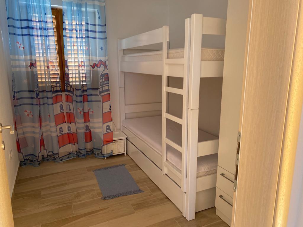 Apartament Anna na pierwszym piętrze domu jednorodzinnego, z widokiem na morze i centrum, w pobliżu lasu sosnowego, ślepa uliczka. W pełni wyposażone, nowo urządzone mieszkanie. W pobliżu korty tenisowe, boiska do koszykówki i piłki nożnej. 2 minuty spacerem do plaży, 5 minut do centrum miasta. Idealne dla rodzin z dziećmi, spokojne miejsce. Uporządkowane plaże piaszczyste, żwirowe i betonowe, promenada przez sosnowy las.