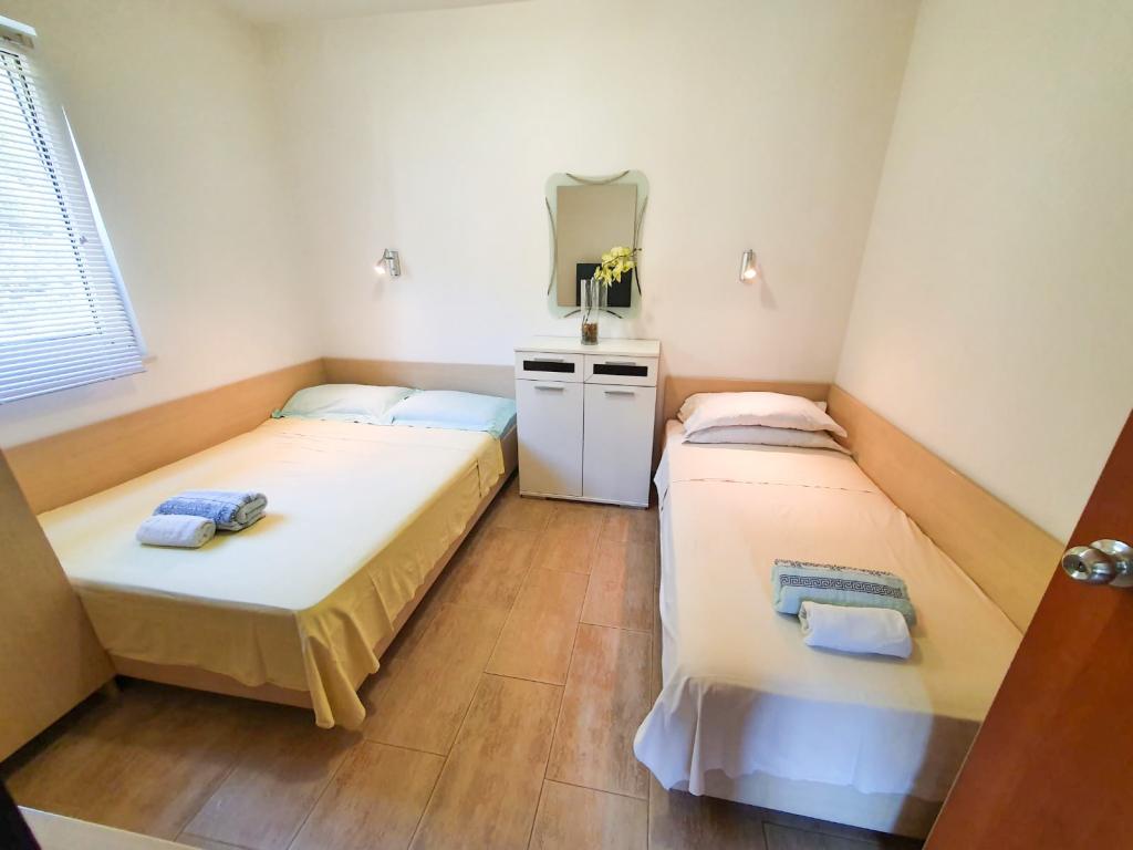 Wynajmuję 2 apartamenty, prywatne tarasy z widokiem na morze, jedną i dwie sypialnie - apartamenty są w pełni wyposażone, klimatyzacja, telewizor, ognisko, szaszłyki, grill, plaża 30 metrów od apartamentów, które znajdują się w sosnowym las. Plaża przed apartamentem jest kamienisto-żwirowa i 7 min. idąc ścieżką nad morzem, znajdujemy piękną zatoczkę z piaszczystą plażą. Dzięki domowej atmosferze i życzliwości gospodarzy gwarantujemy relaksujący wypoczynek. Nasze apartamenty oferują wspaniały widok na morze. Poczuj atmosferę prawdziwych wakacji bez dróg, ruchu ulicznego, hałasu i gwaru, przy szumie morza i śpiewie ptaków, nad krystalicznie czystym, błękitnym morzem, z dala od tłumów na zatłoczonych i hałaśliwych plażach. Nasz dom oferuje zakwaterowanie w komfortowych i nowoczesnych apartamentach, tuż przy wybrzeżu, które gwarantują przyjemne i spokojne wakacje w ciszy i spokoju niezbędnej do pełnego wakacyjnej atmosfery. Podczas przyjemnego spaceru nad morzem można cieszyć się pięknem dziewiczej przyrody i czystym morzem wyspy Ugljan.