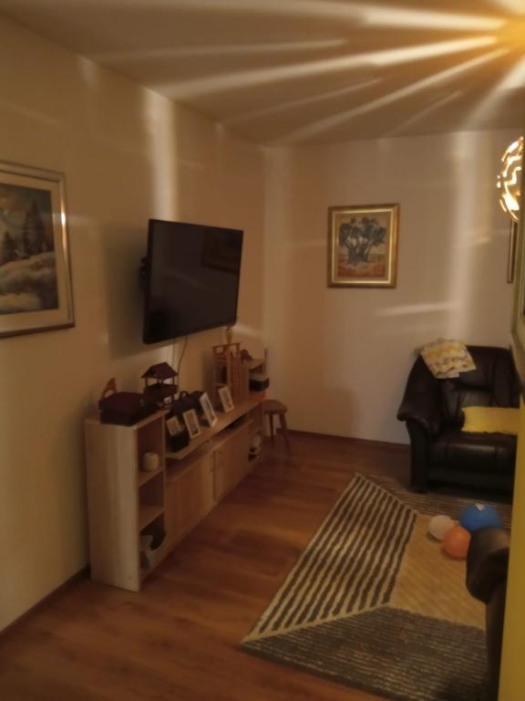 Dom wakacyjny położony na niewielkim wzniesieniu z pięknym widokiem na dolinę Sutlan i Słowenię. Ten prefabrykowany dom zawiera 2 sypialnie, jedną łazienkę z kabiną prysznicową i ogrzewaniem podłogowym, duży salon z telewizorem i dostępem do MAX tv i WIFI, dużą kuchnię ze sprzętem do gotowania i zmywarką. W salonie znajduje się duży gliniany kominek opalany drewnem, a dom posiada centralne ogrzewanie gazowe. Do domu przylega zadaszony taras, na którym znajduje się duży rożen/grill i piec chlebowy. Taras może pomieścić do 20 osób. Za domem znajduje się miejsce przeznaczone do zaparkowania kilku pojazdów.