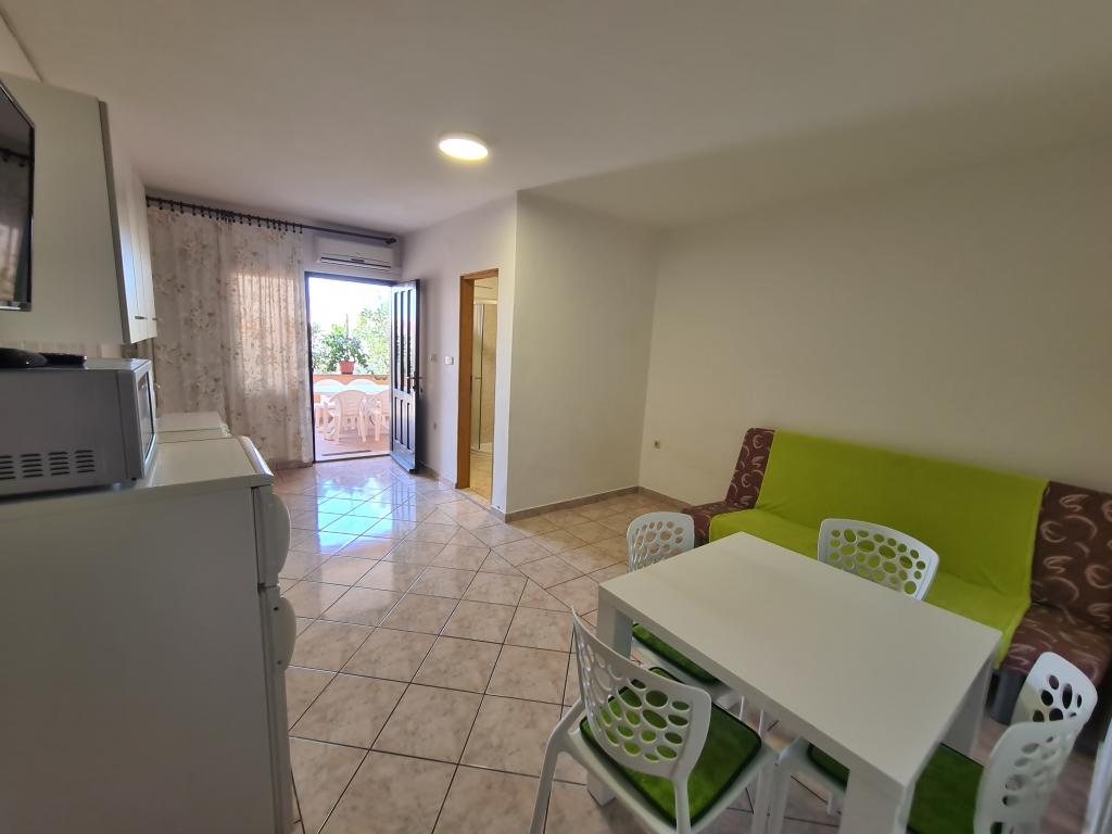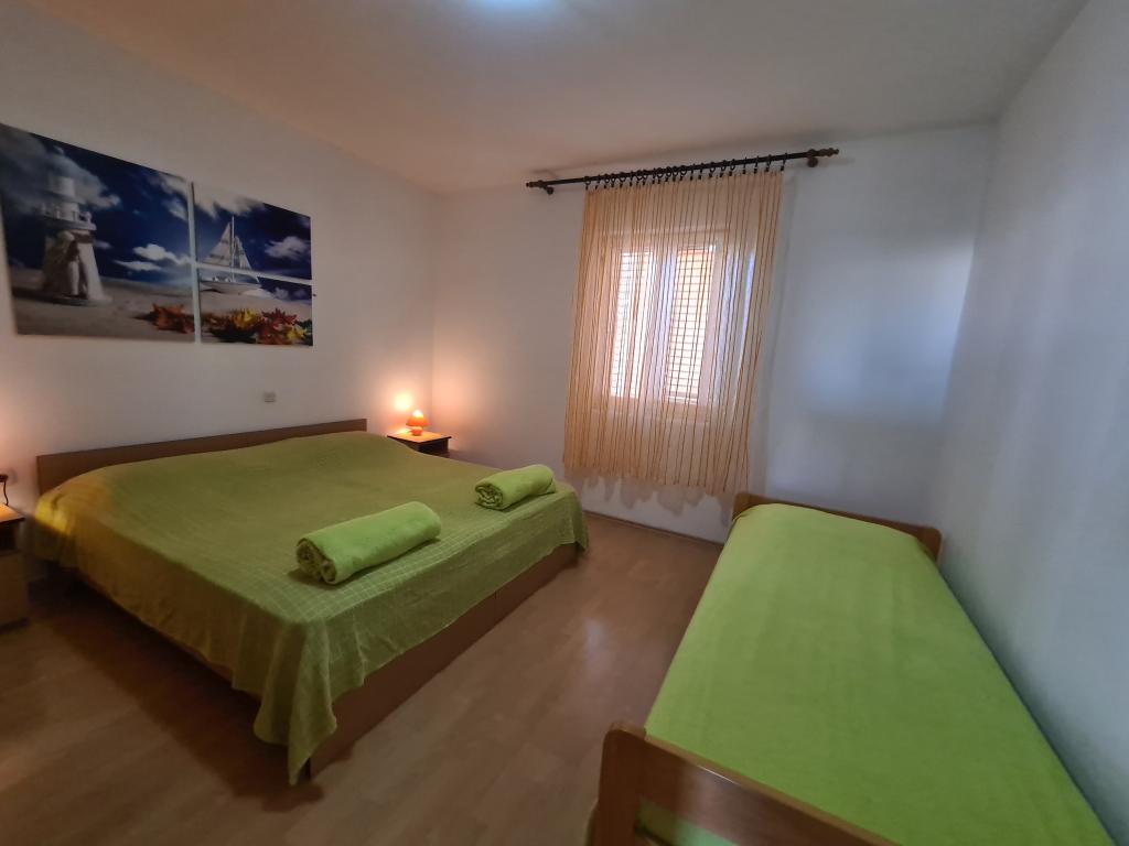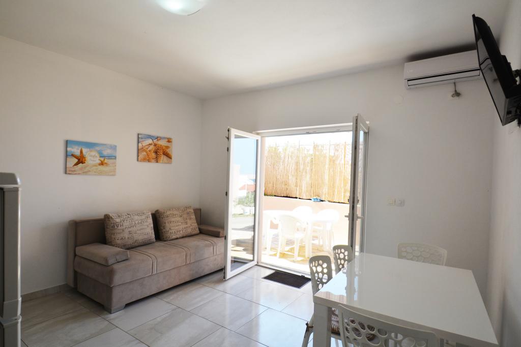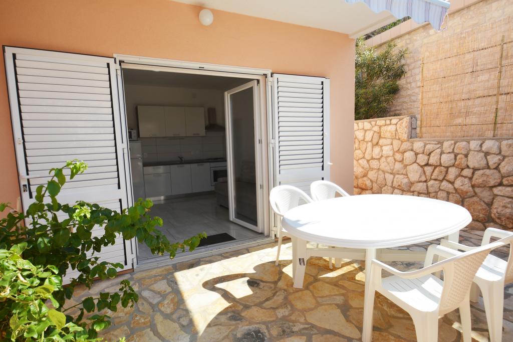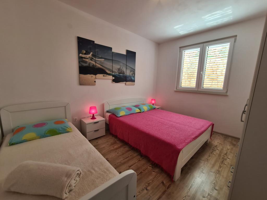 Nowe, komfortowe iw pełni wyposażone apartamenty w spokojnej części wyspy, Kustici. Znajduje się około 150 m od morza, w drugim domu szeregowym. Idealna na spokojny wypoczynek z rodziną. W pobliżu znajdują się liczne piaszczyste plaże, które daje niezapomniane wakacje. Oferujemy apartamenty 5 1 iw 3 1 Wszystkie apartamenty wyposażone są w telewizor, klimatyzację, Wi Fi (bezpłatnie). Każdy apartament posiada własny taras. Miejsca parkingowe. Mamy zdolność do link do statku.