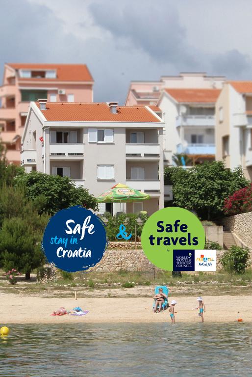 Ogólny Duda Apartamenty znajdują się w małej mieszkaniowej letnim Vidalići, nad brzegiem zatoki wewnętrznej (Zrce, Caska) otacza wyspę Pag. Dom położony jest 20 m od plaży (pierwszego rzędu). Dom położony jest w pięknym ogrodzie, pełnym lawenda, oleander i innych roślin śródziemnomorskich. Mieszkania są w pełni wyposażone w klimatyzację, TV, SAT, kuchenka mikrofalowa ... Każdy pokój Oferujemy trzy apartamenty (niebieski, różowy, pomarańczowy) z widokiem na morze i jeden apartament. Każdy apartament wyróżnia się ze względu na jego harmonijnie zaprojektowanych wnętrzach barwami. Apartamenty składają się z trzech pokoi (salon, kuchnia, sypialnia i łazienka) oraz dwa balkony z widokiem na morze. Każdy apartament może pomieścić cztery osoby. Kawalerka (zielony dekorowanie wnętrz) składa się z dwóch pokoi (sypialnia kuchnia i łazienka) i dużym balkonem 12m2.