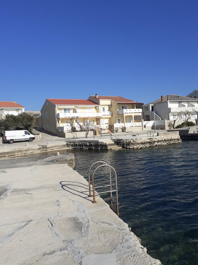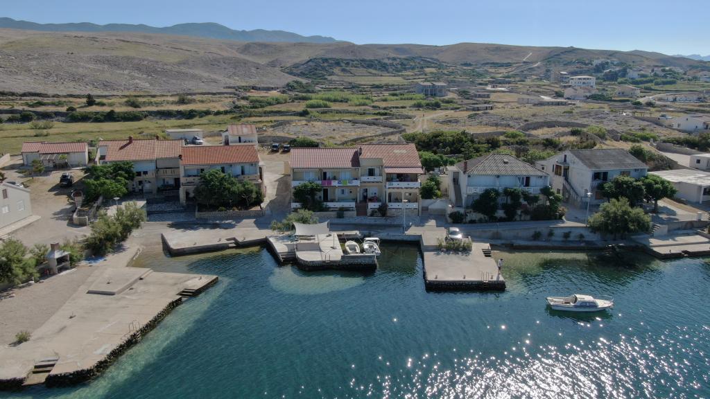 Apartamenty Katica znajdują się w pierwszym rzędzie do morza, położone w spokojnej okolicy, idealnej dla turystyki rodzinnej. W wiosce jest sklep, piekarnia i kilka restauracji, a od miasta Novalja jest 6 km. Apartamenty posiadają duże tarasy, z których roztacza się wspaniały widok na Zatokę Pag i zachód słońca.