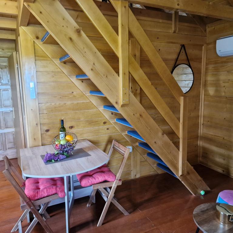 Drewniany dom na wakacje na łonie natury, położony w małej, słabo zaludnionej slawońskiej wiosce. Idealny na ucieczkę od codziennych obowiązków i prawdziwy wypoczynek przy śpiewie ptaków i codziennej wizycie zakochanej pary. Dom składa się z parteru z sypialnią, kuchnią, salonem, łazienką i dużym zadaszonym tarasem. Na piętrze otwarta galeria z miejscem do czytania i wypoczynku z widokiem na jezioro oraz sypialnia z dwoma łóżkami. W domu znajduje się również sad mieszany z kilkudziesięcioma drzewami różnych owoców i jagód, z których goście mogą korzystać, gdy w ogrodzie jest coś (możliwa opcja to zbieranie ich na własne potrzeby, robienie domowej marmolady z owoców z ekologicznych upraw i wziąć na pamiątkę). Kilometry ścieżek przyrodniczych otwarte przed gościem, odpowiednie do jazdy na rowerze, spacerów, zwiedzania. Okoliczne atrakcje są łatwo dostępne, a dom jest idealną bazą wypadową do odkrywania Slawonii.