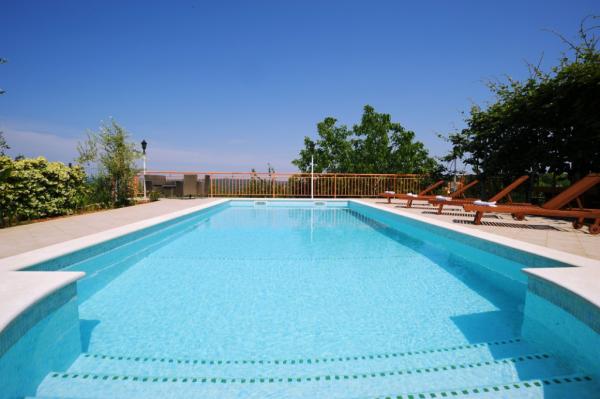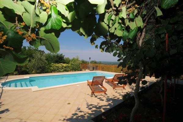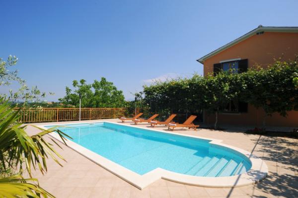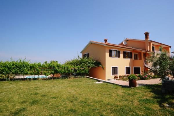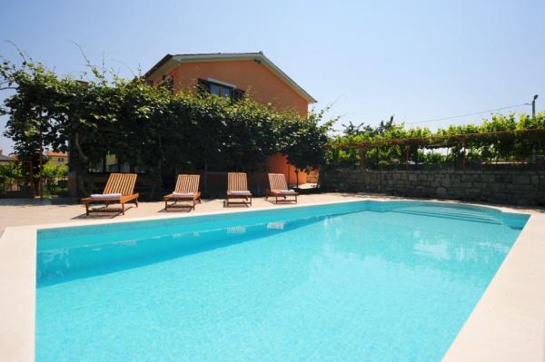 Ta nieruchomość o wielkości puli 32m2, 3 km.od mora.Smijesten w cichym miejscu w otoczeniu zelenilom.Pogodan dla trzech rodzin lub większej grupy prijatelja.Objekt posiada 5 sypialnie (podwójne) i 2 (single), 3 łazienki z prysznic, 3 kuchnie ze zmywarką i 3 żyjącego boravka.U stoczni jest huśtawka, boisko do badmintona i siatkówki, trampolina, 4 rowery i kominkiem z dużym drewnianym stołem i klupama.Objekt jest ogrodzone ogradom.Obijekt pełni klimatyzowany i ma dostęp do bezprzewodowego Internetu oraz pokój rekreacyjny z bilardem nogometom.Uz istnieje otwarty taras 60m2 z leżakami i parasolami oraz jacuzzi.