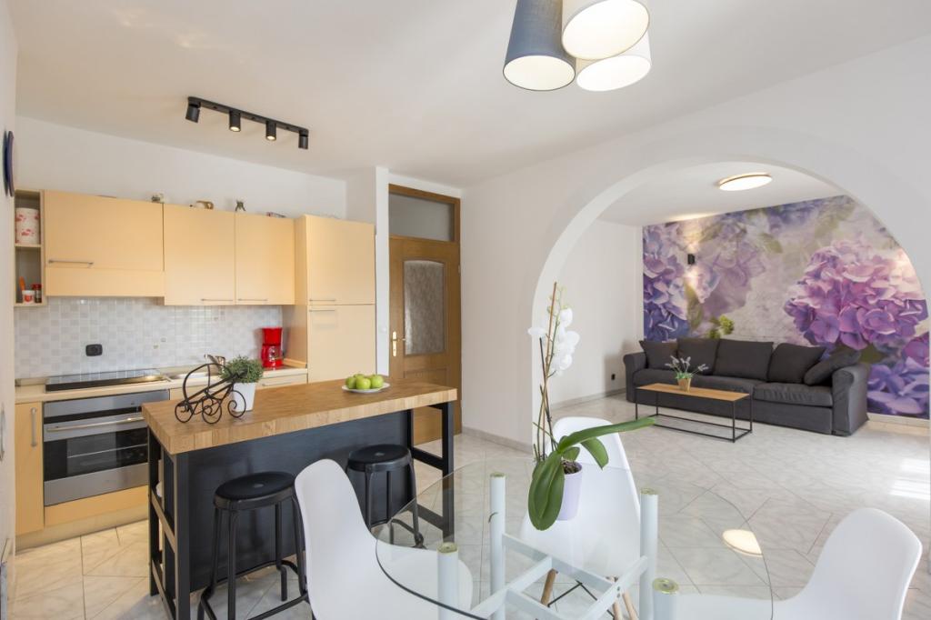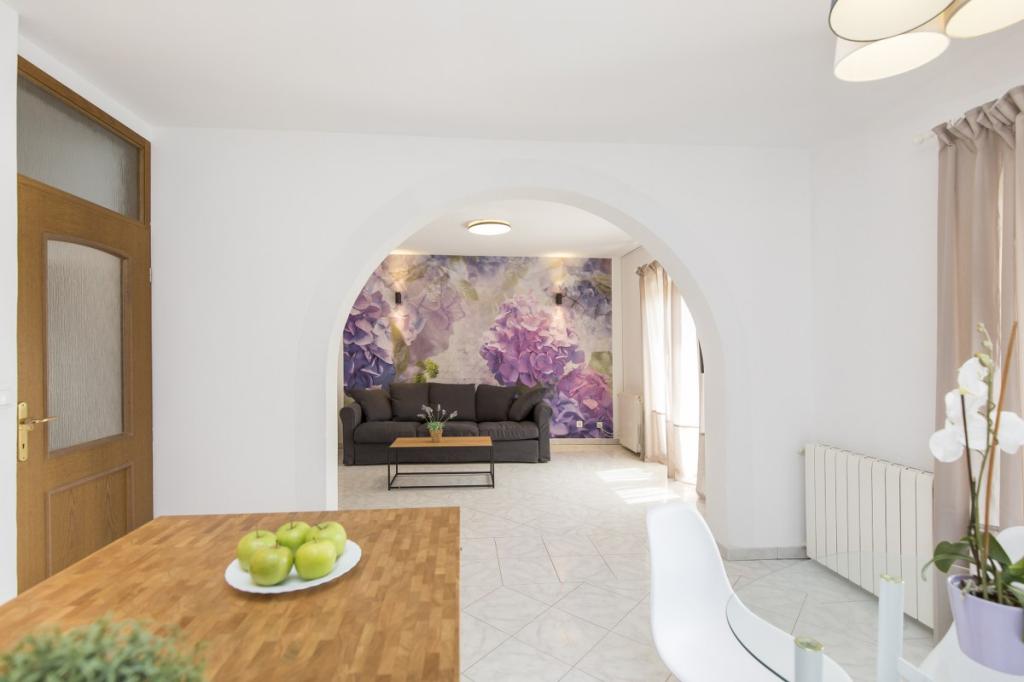 Mieszkanie znajduje się na terenie posesji właściciela. Nieruchomość składa się z 2 domów, w których mieszka właścicielka Line wraz z córką. Lokalizacja apartamentu znajduje się w miejscowości Ripenda 1 km od starego miasta Labin i 4 km od Rabac i plaż. Miejsce jest ciche, a położenie domu pozwala cieszyć się prywatnością i spokojem