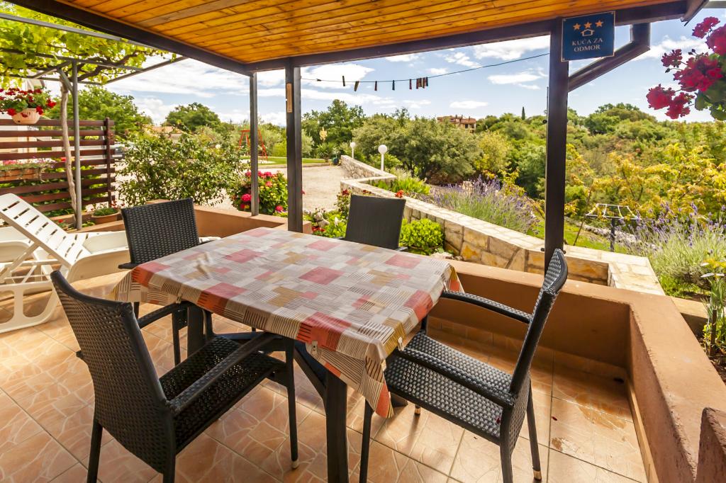 Ten niewielki, urokliwy dom z widokiem na morze w spokojnej okolicy, w otoczeniu zieleni, zaledwie 5 minut drogi od morza i 5 minut od starego miasta Labin. Z tarasu rozciąga się piękny widok na morze i wyspy Kvarner. Posiada jedną sypialnię, kuchnię, pokój dzienny z rozkładaną sofą oraz łazienkę. Dom jest przestronny taras z grillem i leżakami. Dom wyposażony jest w klimatyzację, telewizję satelitarną, piekarnik, mikrofalówka, ekspres do kawy, pralka, suszarka do włosów oraz bezpłatny bezprzewodowy.