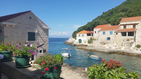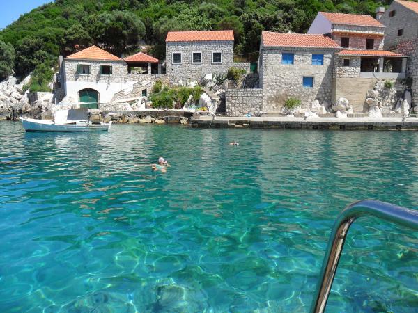 Apartamenty Simic znajdują się w spokojnej, malowniczej zatoce portu w odległości 10 metrów od morza. Za mieszkanie 2 plus 1 jest taras w ogrodzie i oddzielne wyjście na schody do morza. W odległości 5 metrów od morza znajduje się duży taras, dostępny dla obu mieszkań. Jest wyposażony w leżaki, stoły i krzesła, parasole i prysznic na świeżym powietrzu. Istnieje również grill na świeżym powietrzu, koja i wspólny parking w odległości 15 metrów od domu.