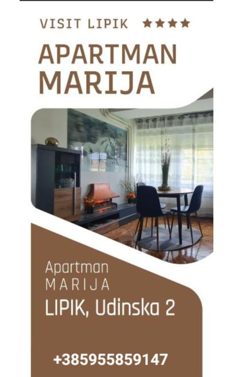 Apartament Marija Apartament znajduje się w bezpośrednim sąsiedztwie Uzdrowiska Lipik. Przeznaczony jest dla 2+1 osób i posiada 4 gwiazdki. Mieszkanie składa się z: kuchni, łazienki, salonu i sypialni. Jak widać na zdjęciach, mieszkanie jest w pełni wyposażone m.in. w kabinę prysznicową, łóżka z materacem sprężynowym, poręcz do drzwi wejściowych, jest przystosowane dla osób niepełnosprawnych ruchowo... Jednocześnie , przed samym obiektem znajduje się bezpłatne miejsce parkingowe.