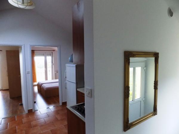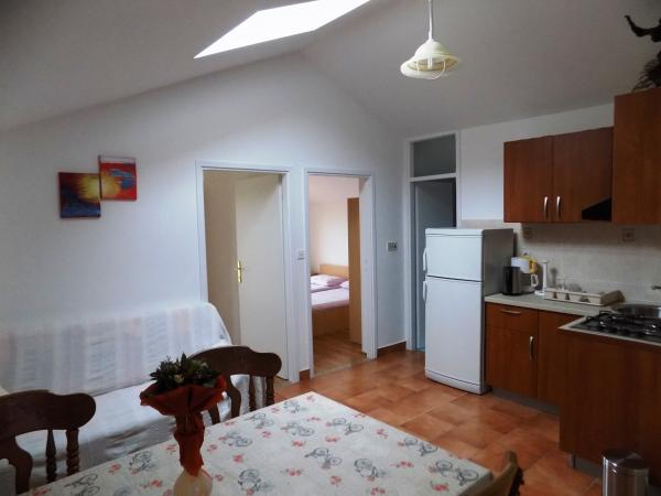 W pełni wyposażone mieszkanie w rodzinnym domu w zLjupco z tarasem z widokiem na morze i słońce, duży parking, grill i ogród z sezonowych owoców i warzyw. Traktuj siebie i swoją rodzinę miły odpoczynek i relaks w otoczeniu morza i zielenią spokojnej dalmatyńskiej daleko od zatłoczonych ośrodków turystycznych i zatłoczonym mieście. Dla tych, którzy szukają spokoju i rodzin z dziećmi. Jako część rodzinnego domu znajdują się dwa mieszkania z osobnymi wejściami i prywatności oraz dyskrecji w pełni gwarantowane. Z przodu i tyłu domu znajduje się ogród z sezonowych owoców i warzyw, gaj oliwny, obsadzony lawendy i rozmarynu. Apartament 1 ma powierzchnię 55 m², składający się z kuchni, salonu, łazienki z toaletą oraz dwóch sypialni. Mieszkanie posiada taras z widokiem na zatokę Ljubacki. Apartament 2 ma powierzchnię 35 m kw i składa się z kuchni, łazienki z WC oraz sypialni. Goście mogą korzystać z czystą pościel i ręczniki.