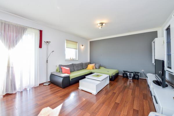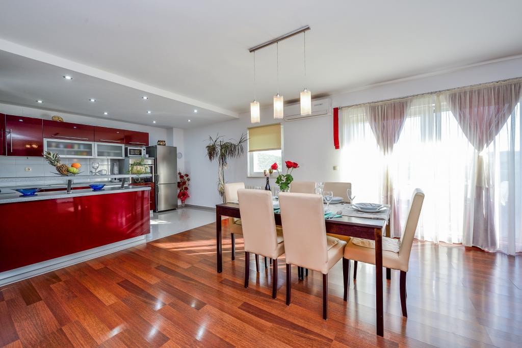 Apartamenty znajdują się w domu rodzinnym. Oba mają 100 metrów kwadratowych i taras o powierzchni 30 metrów kwadratowych. Apartament 1 znajduje się na 1. piętrze domu. Ma dwa pokoje i dwa dodatkowe łóżka. Ma dwie łazienki. Apartament 2 znajduje się na drugim piętrze domu. Ma 3 pokoje i jedno dodatkowe łóżko. Ma 2 łazienki. Podwórko jest przestronne i nadaje się do zabawy (huśtawki, zjeżdżalnia, bramki). Zapewniono zacienione miejsce parkingowe. Plaża jest piaszczysta, morze jest płytkie i ciepłe, idealne dla rodzin z małymi dziećmi.