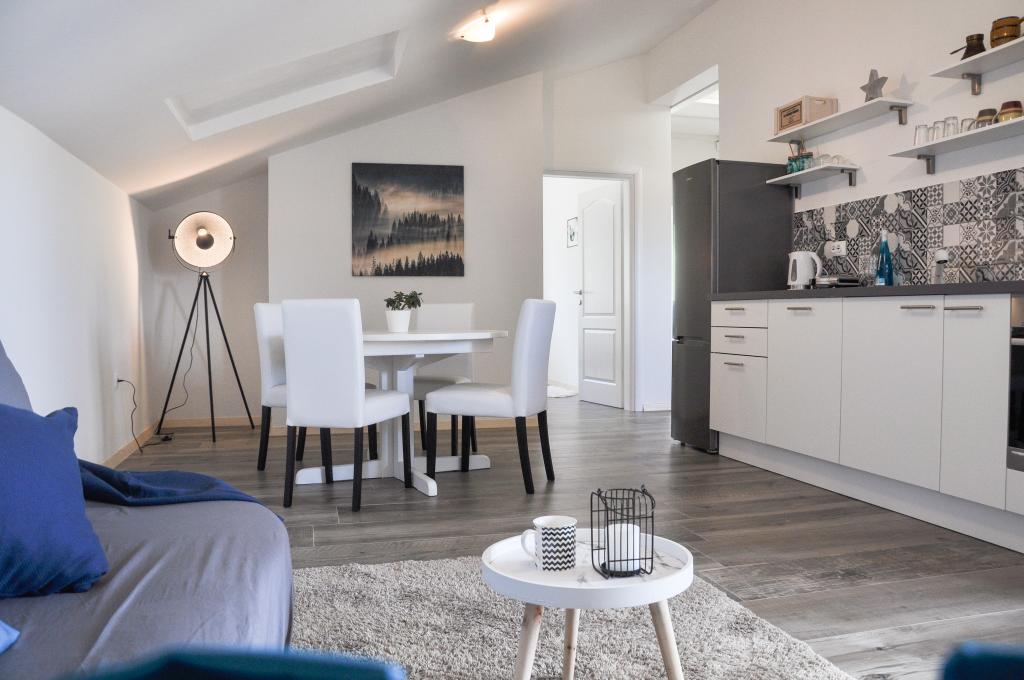 Apartamenty Carnizza oferują duży dziedziniec z bezpłatnym i zadaszonym parkingiem oraz placem zabaw dla dzieci do gry w piłkę nożną, siatkówkę i huśtawki. Oferują również przestrzeń do spacerów po domu. Dom położony jest w cichym otoczeniu, a widok skierowany jest na morze i Velebit.