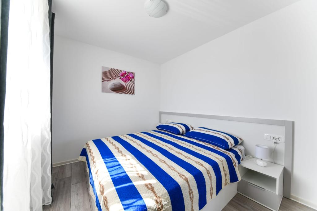 Apartament z jedną sypialnią 2+2, wybudowany w 2020 roku. Nowoczesny, w pełni wyposażony apartament w spokojnej części miasta, zapewniający ciszę i spokój. Znajduje się 300 m od morza, 700 m od restauracji i kawiarni oraz 800 m od sklepów. Do dyspozycji gości jest grill, taras i balkon z widokiem na morze. Strzeżony parking. Dla dzieci dostępne jest mobilne łóżeczko i krzesełko do karmienia. Łatwy dojazd samochodem do Parku Narodowego Paklenica, na wyspy Pag, Nin, Vrsi i Zadar, a także 24 km od lotniska Zemunik.
