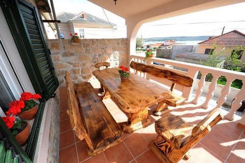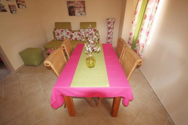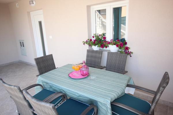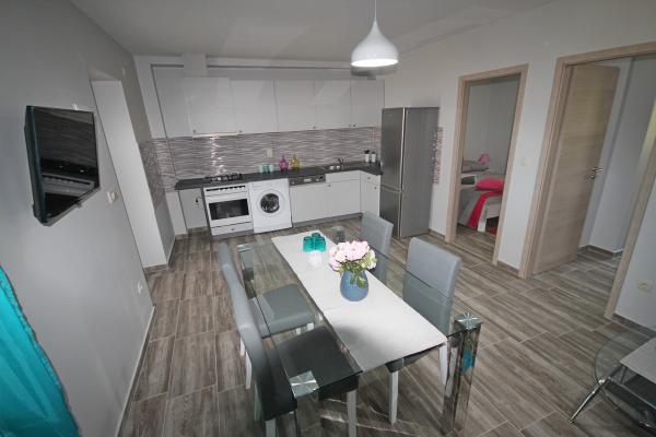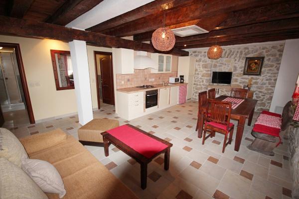 Nowo wyremontowane apartamenty z klimatyzacją i internetem, w kamiennym domu w Dalmacji, niedaleko piaszczystej plaży. Parter – A1, powierzchnia 80 m2, 3 sypialnie z łóżkami podwójnymi, duży salon z kuchnią i jadalnią, rozkładana sofa dla 2 osób, 2 łazienki (dwuosobowa), zadaszony taras 30 m2. 1 piętro – A2, powierzchnia 80 m2, 3 sypialnie z łóżkami podwójnymi, duży salon z kuchnią i jadalnią, rozkładana sofa dla 2 osób, 2 łazienki (2 wc), zadaszony taras 30 m2 z częściowym widokiem na morze. W nowej części domu na sezon 2017 przygotowaliśmy więcej apartamentów: Parter B1 / piętro B2, powierzchnia 54 m2, 2 sypialnie z łóżkami podwójnymi, salon z kuchnią i jadalnią, rozkładana sofa dla 2 osób, 2 łazienki, taras. Wyposażenie: TV-SAT, klimatyzacja, internet, pralka, kuchnia z kuchenką, piekarnikiem, duża lodówka z zamrażarką, zmywarka, mikrofalówka, ekspres do kawy. Goście mają do dyspozycji bezpieczny parking przed domem oraz grill.
