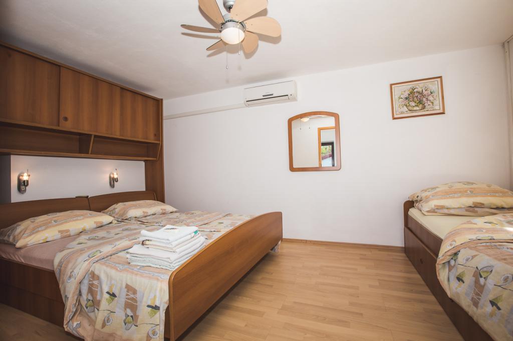 Apartamenty Jug - Lopar Witamy w apartamentach Jug! Lopar, piaszczysty raj! Nasze apartamenty rodzinne znajdują się w miejscowości Lopar na wyspie Rab (Chorwacja). Tutaj możesz korzystać ze wszystkich dobrodziejstw wyspy, bogatej oferty turystycznej czy atrakcji kulturalnych i artystycznych. Lopar ma 22 piękne piaszczyste plaże, które są idealne dla wszystkich grup wiekowych. Rajska plaža jest najsłynniejszą plażą w Loparze i jest szczególnie odpowiednia dla rodzin z małymi dziećmi. Istnieją również słynne plaże dla nudystów, takie jak plaża Sahara, plaża Ciganka itp. Lopar jest bogaty w zasoby naturalne, bogatą przeszłość z tradycją i dziedzictwem historycznym, które stanowią podstawę działalności turystycznej. Będzie można skosztować różnych przysmaków gastronomicznych przygotowanych w tradycyjny sposób! Tylko 500 m od słynnej rajskiej plaży i pierwszych restauracji, idealne miejsce na coroczne wakacje. W zacisznym miejscu, z dala od tłumów, będziesz cieszyć się świeżym powietrzem z widokiem na morze i zieleń. Apartamenty Jug znajdują się 700 m od przychodni i poczty, 500 m od sklepu i 600 m od centrum Loparu i obiektów sportowych i rozrywkowych. Wszyscy goście mają zapewnione miejsce parkingowe na zadaszonym parkingu, goście mogą również korzystać z grilla na świeżym powietrzu i czajnika. Tam na tarasie i kamiennej ławce będziecie mogli przygotować różne dania mięsne i rybne i tym samym rozweselić i zebrać najbliższych. Apartamenty są klimatyzowane, z bezpłatnym dostępem do Internetu i telewizją satelitarną. Odwiedź nas i spędź swoje idealne wakacje w apartamentach Jug! Czekamy z niecierpliwością na twoją wizytę!