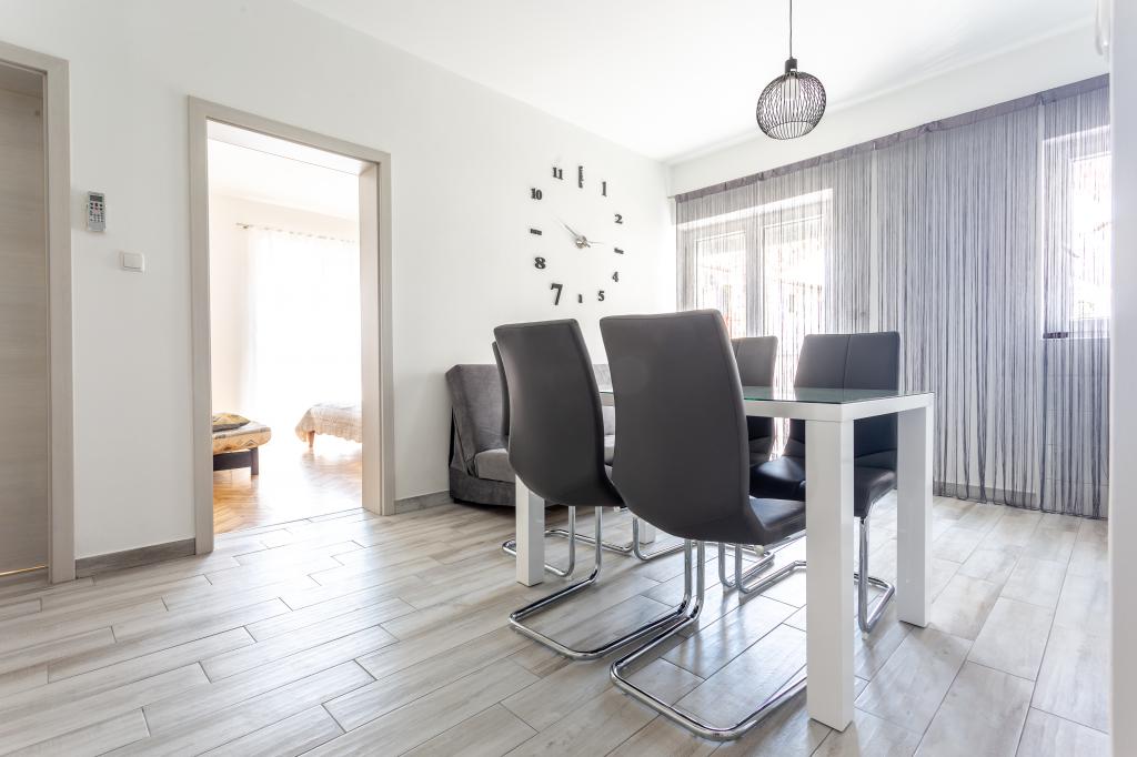 Mieszkaliśmy w apartamencie typu studio na 6 nocy. Mieszkanie było jak na zdjęciach. Przywitał nas czysto, schludnie, wszystko na swoim miejscu. Od razu otrzymaliśmy dodatkową pościel do łóżeczka dziecięcego, pani która nas przywitała, właścicielka mieszkania, od razu rozłożyła kanapę i włożyła pościel. W mieszkaniu było wystarczająco dużo ręczników i ścierek, a po 4 dniach pod drzwiami czekał na nas kosz z nowymi, czystymi ręcznikami i ściereczkami. W mieszkaniu mieliśmy wszystko, co potrzebne w zakresie naczyń, przyborów kuchennych, ostrych noży itp. (podkreślam to ze względu na wcześniejsze doświadczenia w innych mieszkaniach, w których wcześniej spędzaliśmy wakacje). To, co jest prawdopodobnie największą wartością tego zakwaterowania, to pięknie zagospodarowane podwórko z mnóstwem atrakcji dla dzieci. Również blisko Paradise Beach, 5 minut na piechotę. Gospodarze bardzo mili, dyskretni, a jednak zawsze pod ręką, gdyby coś było potrzebne. Zawsze polecam ten nocleg, szczególnie rodzinom z dziećmi.