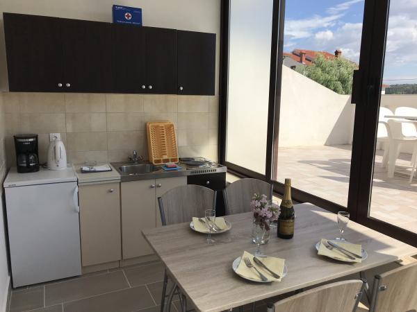 Apartamenty Pavlečić znajdują się w Lopar na wyspie Rab. Apartamenty składają się z 6 oddzielnych mieszkań. 4 apartamenty są przeznaczone dla 3 osób i 2 apartamenty są dla 4 osób. Każdy apartament ma osobne wejście, kuchnię, łazienkę, toaletę z prysznicem, 1 lub 2 sypialnie, telewizję satelitarną, taras ze stołem i krzesłami. Na parterze znajduje się duży taras ze stołami i krzesłami oraz grillem, z którego mogą korzystać wszyscy goście. Odległość od plaży wynosi zaledwie 20 m. Plaża jest idealna dla małych dzieci ze względu na płytkie morze i piaszczystą plażę. Sklepy, restauracje, poczta znajdują się w promieniu 400m.