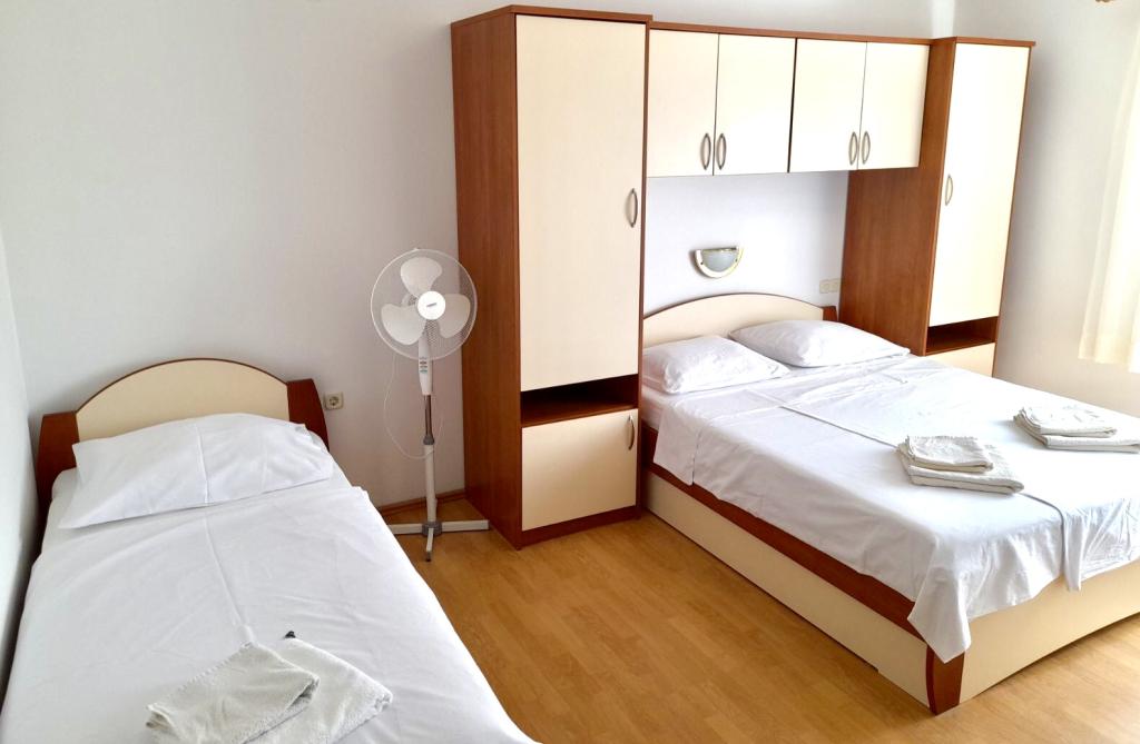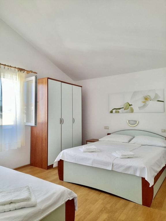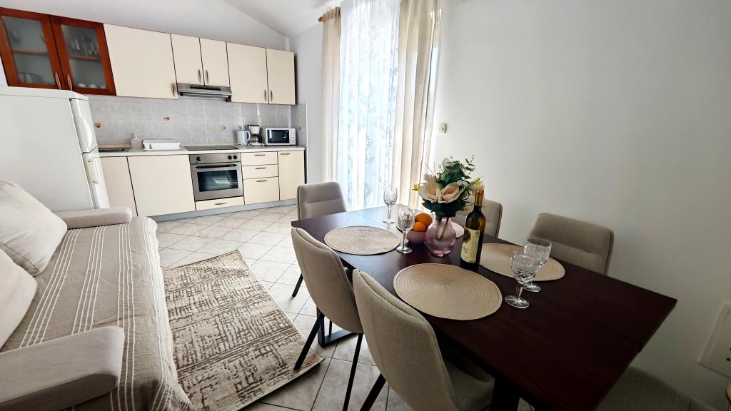 Apartamenty Petrinić znajdują się w odległości 100 metrów od centrum miejscowości Lopar. Oferują wysokiej jakości zakwaterowanie i przyjemny pobyt dla rodziny i przyjaciół. Znajdują się one w spokojnej okolicy, dzięki czemu można spędzić urlop bardziej zrelaksowany i beztroski. W pobliżu znajduje się restauracja, duże centrum handlowe Konzum, piekarnia, poczta, plac zabaw dla dzieci, kawiarnia, apteka, dworzec autobusowy. W każdym apartamencie znajdują się: dwie duże sypialnie dla 4 osób plus dodatkowe łóżko (4 1), łazienka, pralka, kuchnia, tv / sat, internet, klimatyzacja, balkon, parking i wszystkie niezbędne sprzęty (pościel, ręczniki, ekspres do kawy, czajnik, lodówka, naczynia). W pobliżu jest także piaszczysta plaża. Najbliższa plaża znajduje się 500 metrów od naszego domu, a najsłynniejsza "Paradise Beach" znajduje się zaledwie 800 metrów od hotelu. Mamy nadzieję, że wybierzesz apartamenty Petrinić i czekamy na Twój przyjazd! Rodzina Petrinić