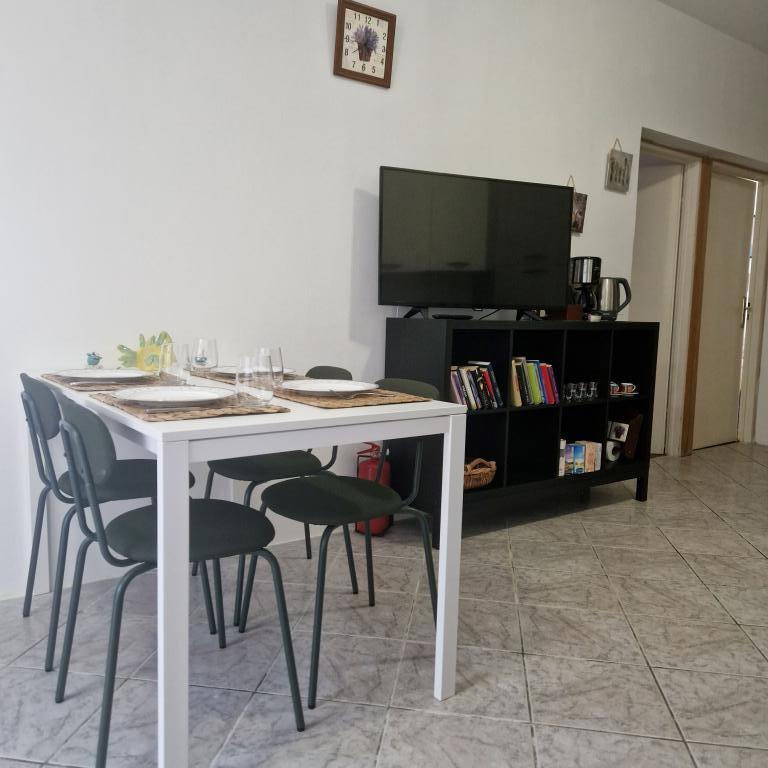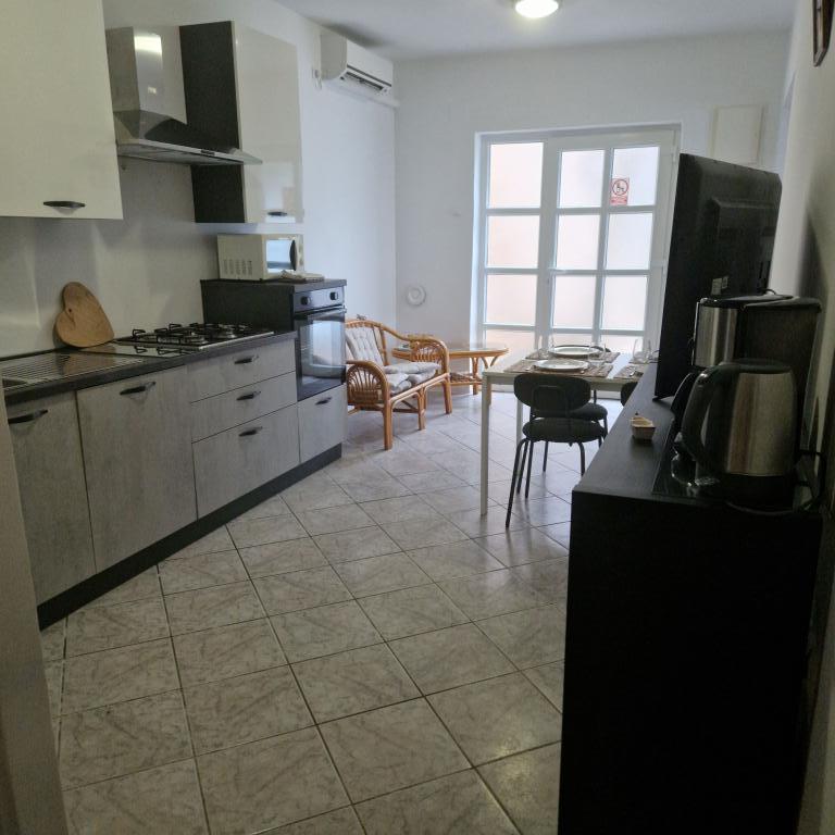 Jeśli chcesz poczuć się jak w raju i cieszyć się wszystkimi wygodami swojego własnego domu, czeka na Ciebie dom położony tuż przy morzu, idealny na spokojny wypoczynek z niezapomnianym widokiem na wyspę Pag i Velebit. Dom posiada 3 sypialnie (4+1), kuchnię, jadalnię, salon, łazienkę i pomieszczenie gospodarcze (z pralką i dodatkową lodówką). Pokoje wyposażone są w łóżka, które w razie potrzeby można rozdzielić na dwa pojedyncze, szafki nocne, stolik i szafę. Każdy pokój posiada bezpośrednie wyjście na zadaszony taras z widokiem na wyspę Pag. Łazienka wyposażona jest w prysznic, toaletę, bidet i umywalkę. Podwórko jest połączone z plażą. Przy wejściu głównym znajduje się grill z dodatkowymi miejscami do siedzenia. Dom znajduje się poniżej poziomu drogi, dzięki czemu jest ukryty przed wzrokiem ciekawskich i sąsiadów. Otoczony jest typowym śródziemnomorskim otoczeniem sosen, rozmarynu i zapachu soli. Zwierzęta są mile widziane.