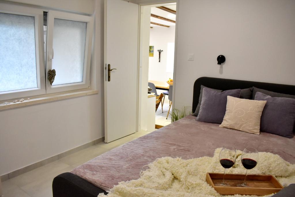 Całkowicie odnowiony i nowocześnie wyposażony apartament w spokojnej okolicy z dużym tarasem i grillem na świeżym powietrzu. Obiekt położony jest 5 minut spacerem do centrum i 15-20 minut spacerem do plaży. W przypadku przyjazdu mniejszej liczby gości lub dłuższego pobytu istnieje możliwość uzgodnienia ceny. Obrazy wyświetlane są w rozdzielczości 3D. Mieszkanie jest w trakcie remontu i będzie gotowe w szóstym miesiącu i będzie umeblowane zgodnie z opublikowanymi zdjęciami.