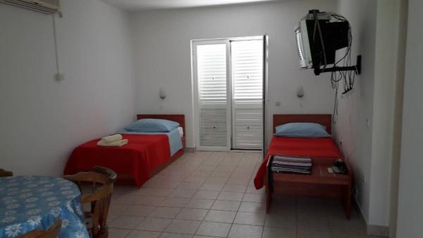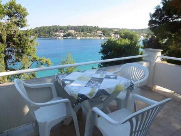Apartamenty znajdują się w pierwszym rzędzie do morza, plaża znajduje się przed domem. Dom położony jest w spokojnej okolicy z naturalnym odcieniem sosen. Apartamenty posiadają prywatne tarasy i oddzielne wejścia, aby zapewnić pełną prywatność dla gości. Tarasy mają piękny widok na morze i okoliczne wyspy. Parking dla samochodów znajduje się przed domem i jest widoczny z mieszkania. Apartamenty znajdują się około 1,5 km od centrum Lumbarda, kilka minut samochodem lub pół godziny spacerem, gdzie goście mogą znaleźć wiele udogodnień.