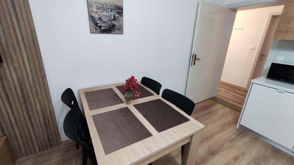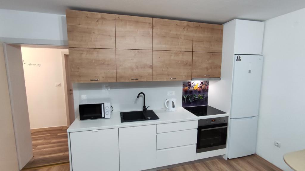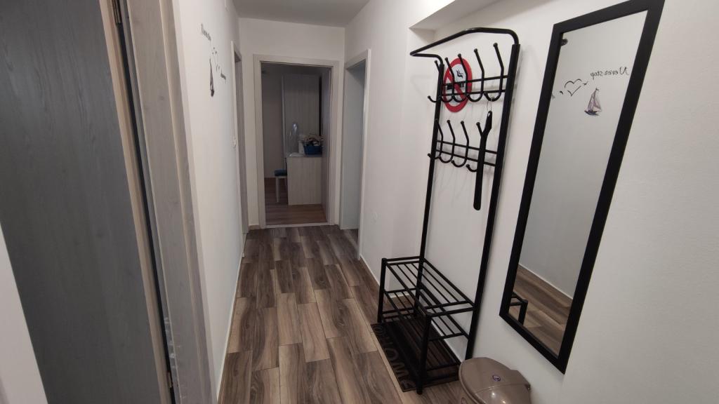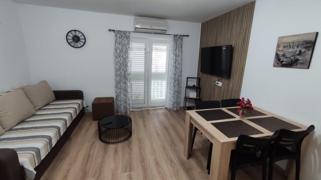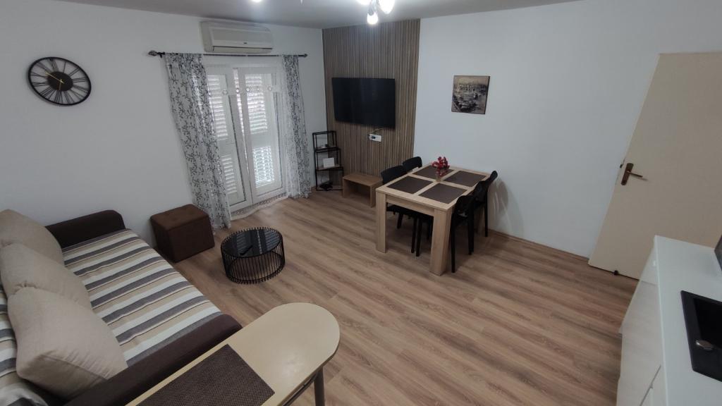 "ADRIATIC APARTAMENT CENTRUM II MAKARSKA" położony w samym sercu miasta, bez balkonu, zapewni Państwu komfort i wszystko co potrzebne do przyjemnego pobytu. Nasz apartament znajduje się w samym sercu miasta, w bezpośrednim sąsiedztwie głównych atrakcji turystycznych, restauracji, sklepów, obiektów miejskich, nabrzeża i plaży, do której można dojść w zaledwie dwie minuty. Wszystko, czego potrzebujesz, jest na wyciągnięcie ręki! Mieszkanie znajduje się na pierwszym piętrze budynku i zajmuje 56 metrów kwadratowych i zapewnia wystarczająco dużo miejsca na komfortowy pobyt. Składa się z dwóch wygodnych sypialni, łazienki i salonu i jest wyposażony w nowe meble, wygodne łóżka i klimatyzację, dzięki którym poczujesz się jak w domu. W pełni wyposażona kuchnia: Jeśli lubisz gotować lub po prostu chcesz przygotować szybki posiłek, nasza w pełni wyposażona kuchnia jest tutaj, aby spełnić wszystkie Twoje potrzeby. Nasz apartament jest wyposażony w bezpłatny bezprzewodowy dostęp do Internetu i prywatny parking, co pozwala na zwiedzanie miasta bez martwienia się o parking. Powitanie!