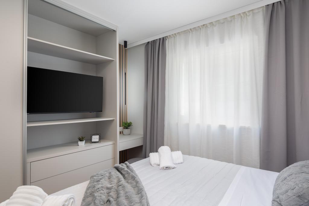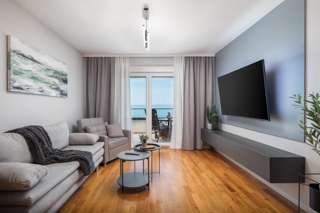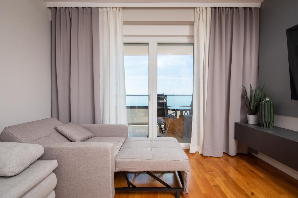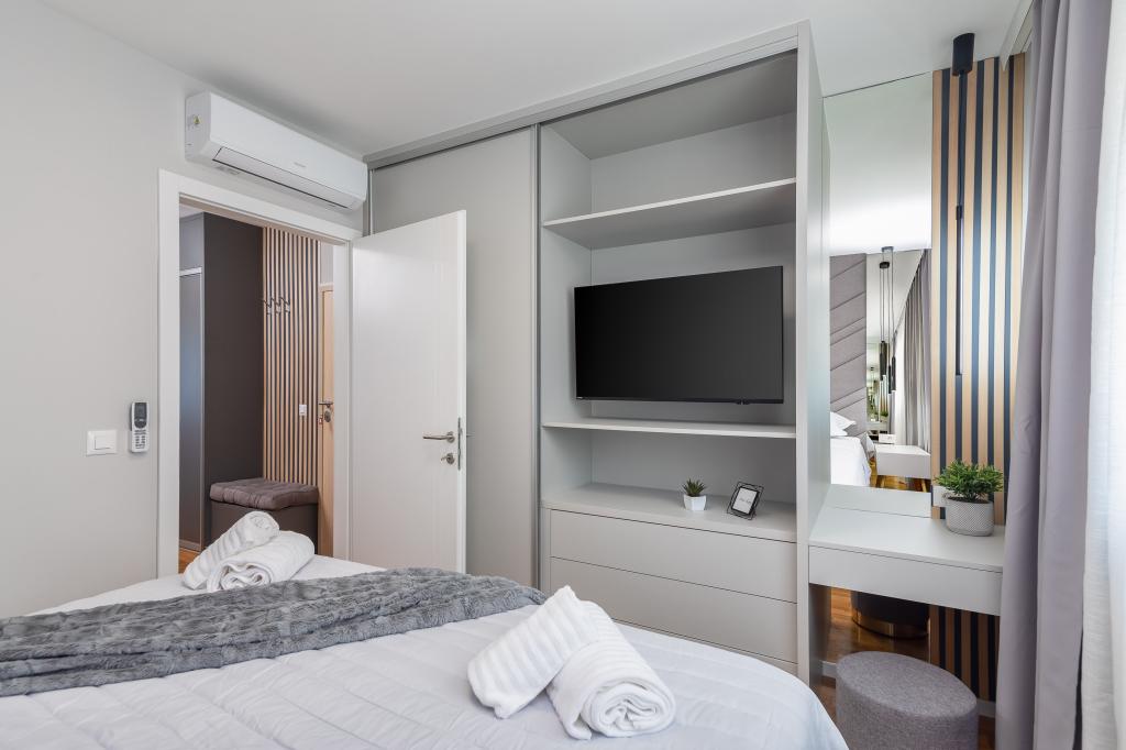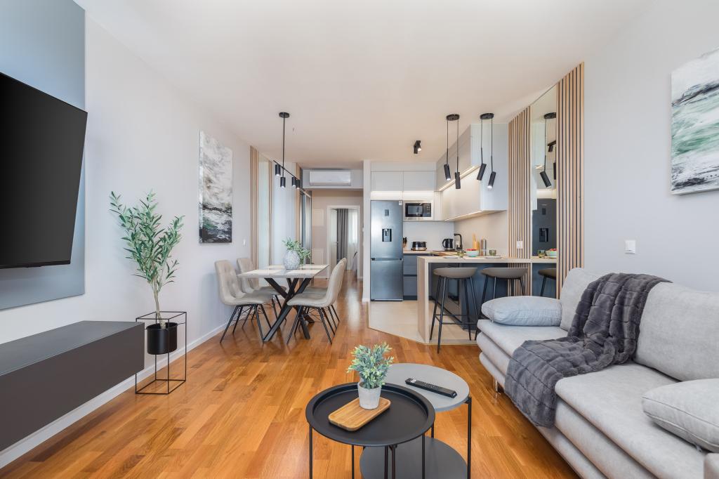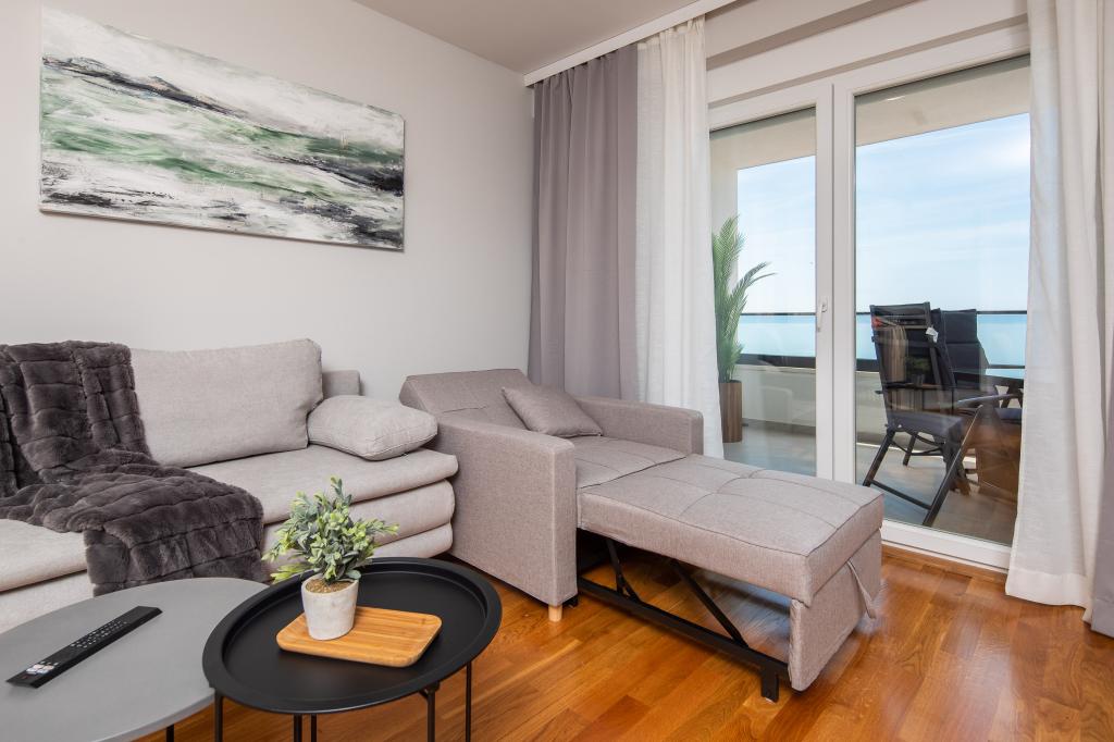 Apartament A&N to nowoczesny i nowo umeblowany apartament z nutą luksusu. Ma częściowy widok na morze. W apartamencie mogą nocować maksymalnie 4 osoby dorosłe i 1 dziecko. Składa się z: 1 sypialni + pokoju dziennego z rozkładaną sofą i mniejszą kanapą pomocniczą. Parking znajduje się przed budynkiem.