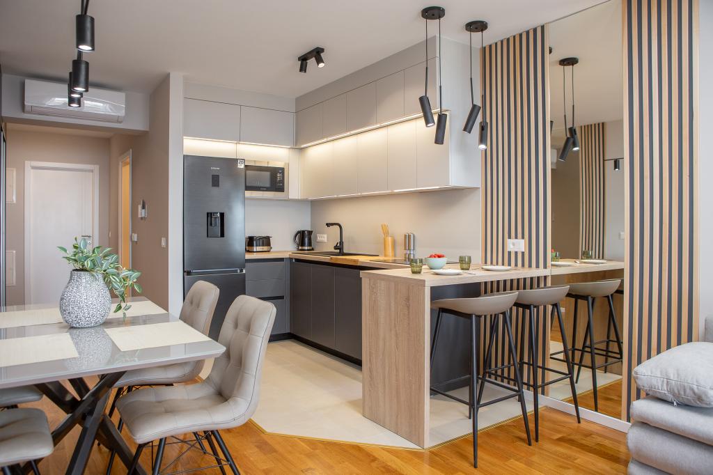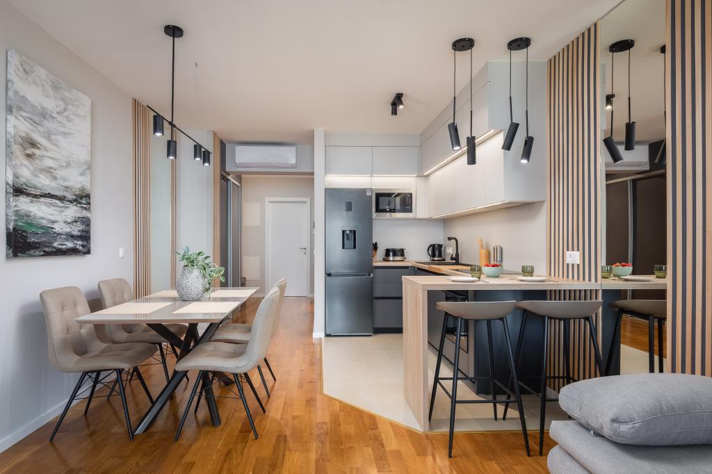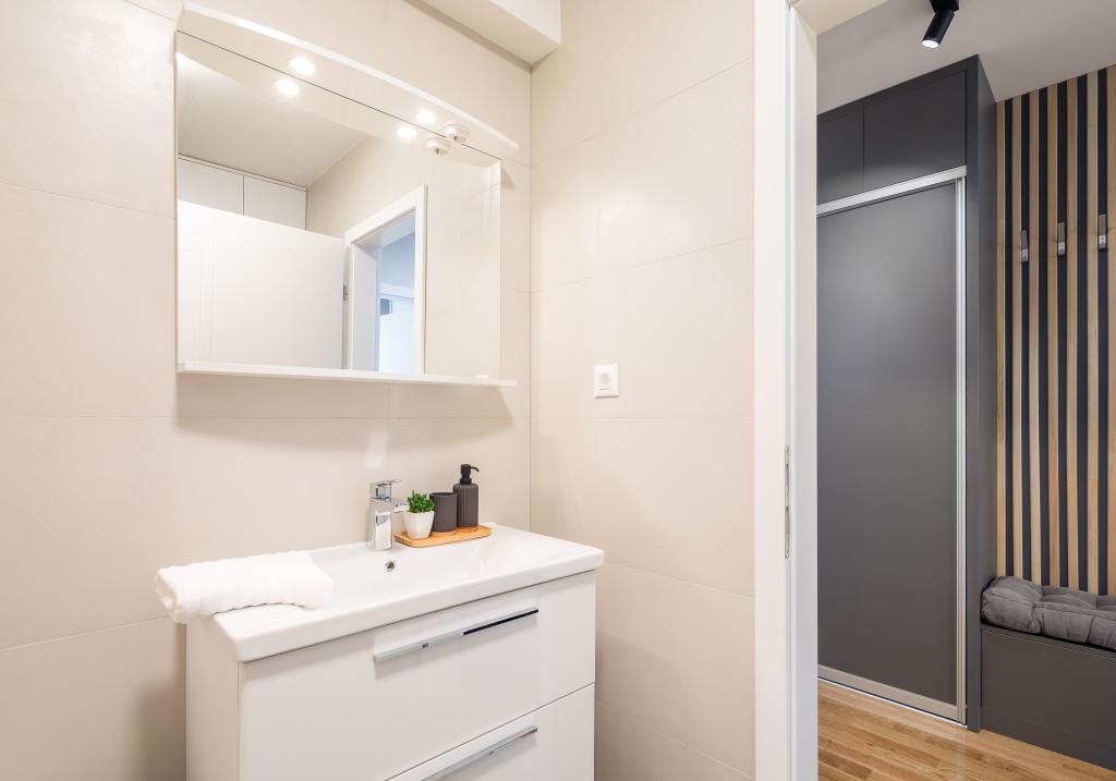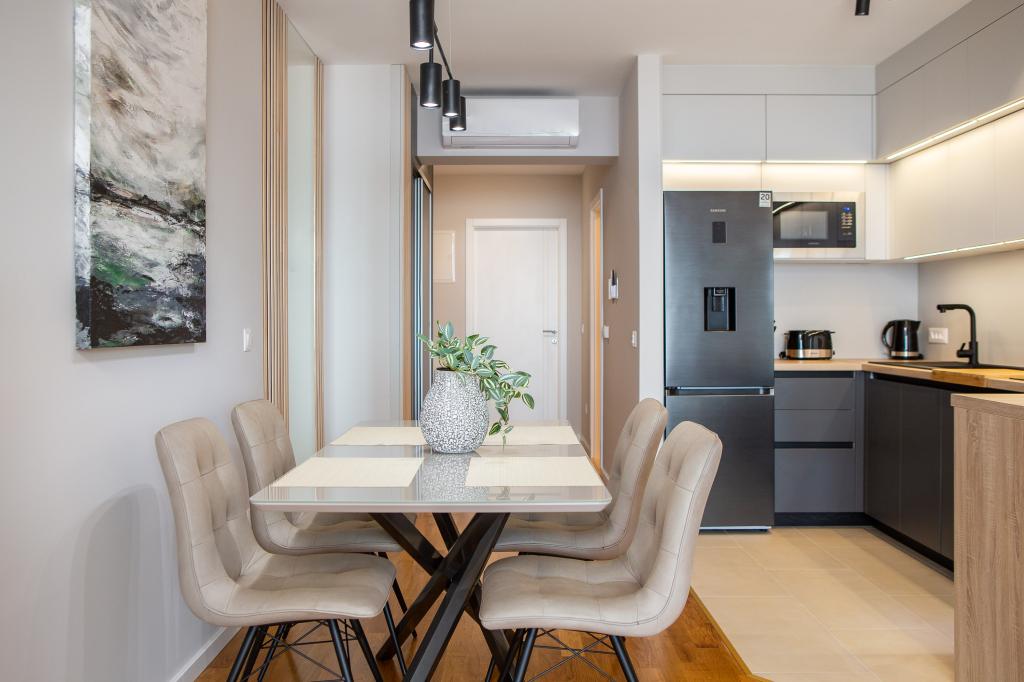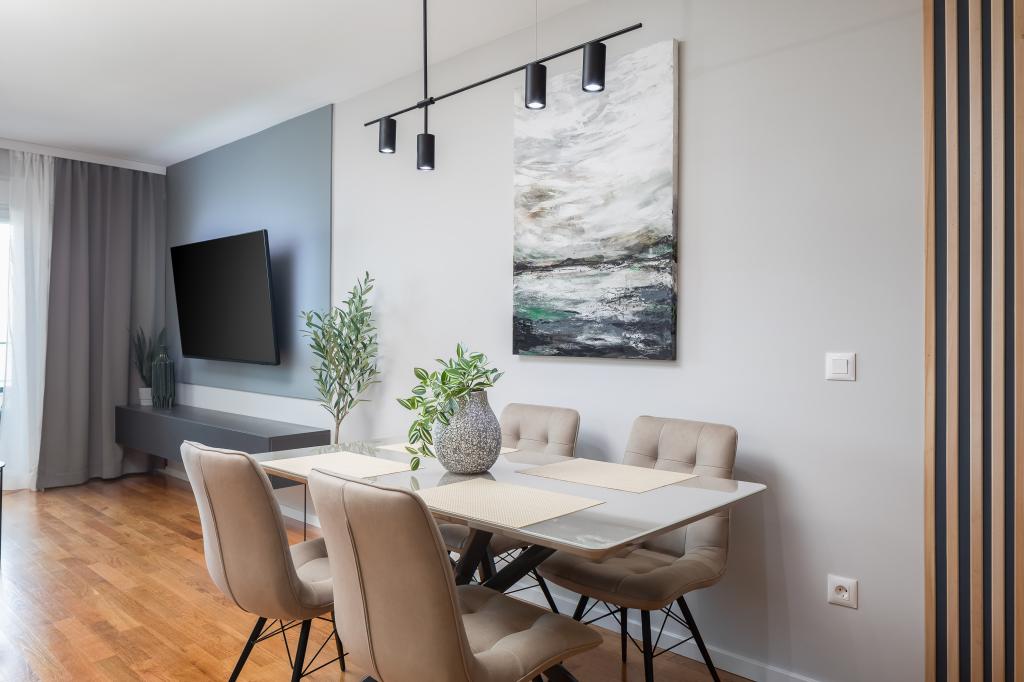 Apartament A&N to nowoczesny i nowo umeblowany apartament z nutą luksusu. Ma częściowy widok na morze. W apartamencie mogą nocować maksymalnie 4 osoby dorosłe i 1 dziecko. Składa się z: 1 sypialni + pokoju dziennego z rozkładaną sofą i mniejszą kanapą pomocniczą. Parking znajduje się przed budynkiem.