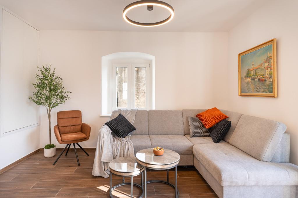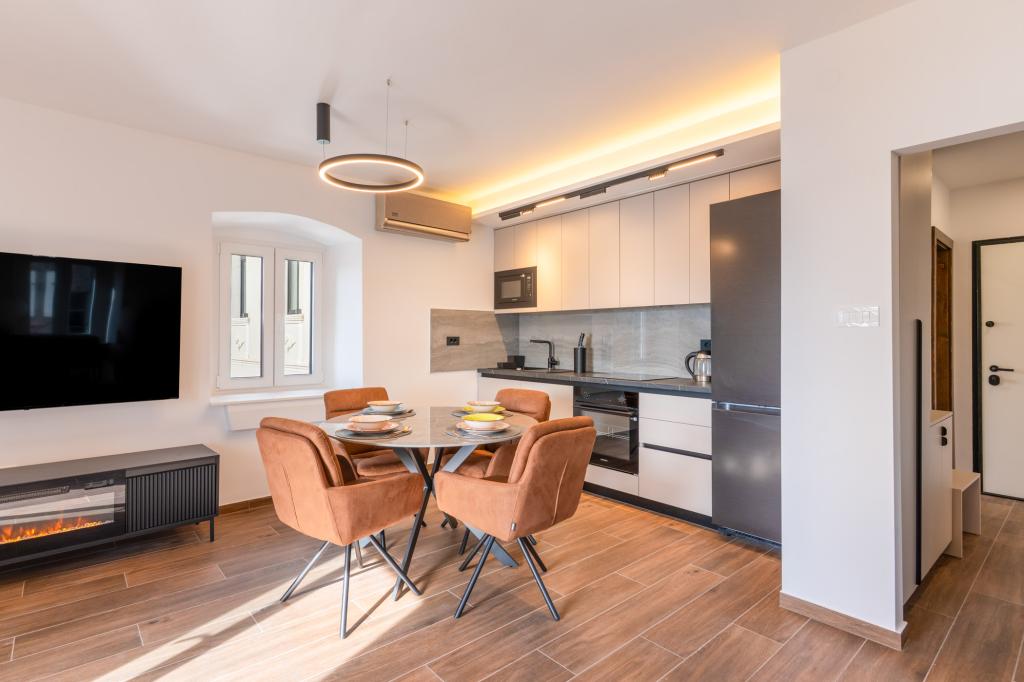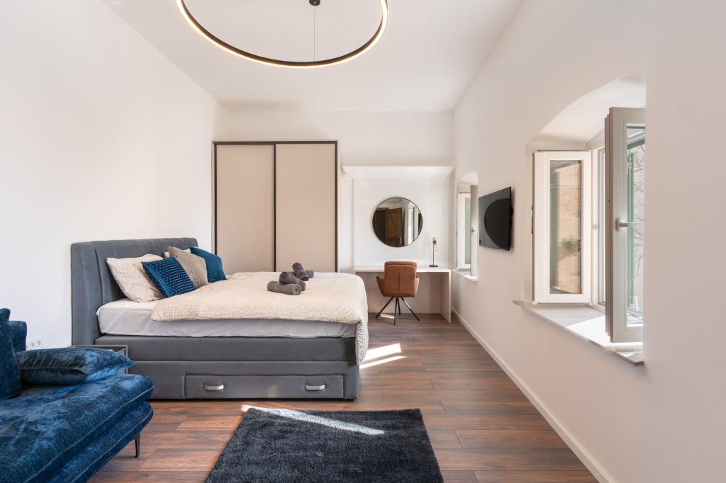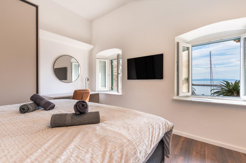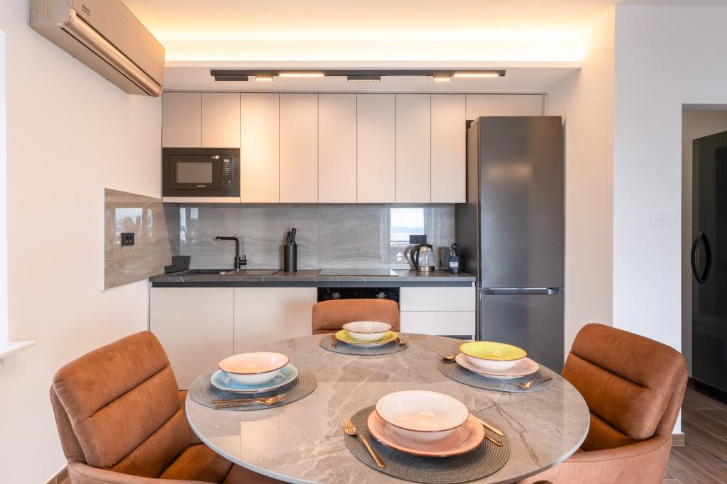 Apartament Azzuro położony jest w samym sercu Makarskiej, nad samym brzegiem morza. Oferuje on nowoczesne i przestronne wnętrza z widokiem na morze. Apartament składa się z sypialni, łazienki, w pełni wyposażonej kuchni oraz wygodnego salonu z niewielkim balkonem z widokiem na morze. Dzięki doskonałej lokalizacji, wszystkie udogodnienia, takie jak plaże, restauracje, kawiarnie i sklepy, znajdują się w zasięgu spaceru. To idealny wybór dla gości, którzy chcą pozostać w centrum wydarzeń i cieszyć się tętniącą życiem atmosferą Makarskiej, z gwarantowanym wsparciem personelu podczas pobytu.